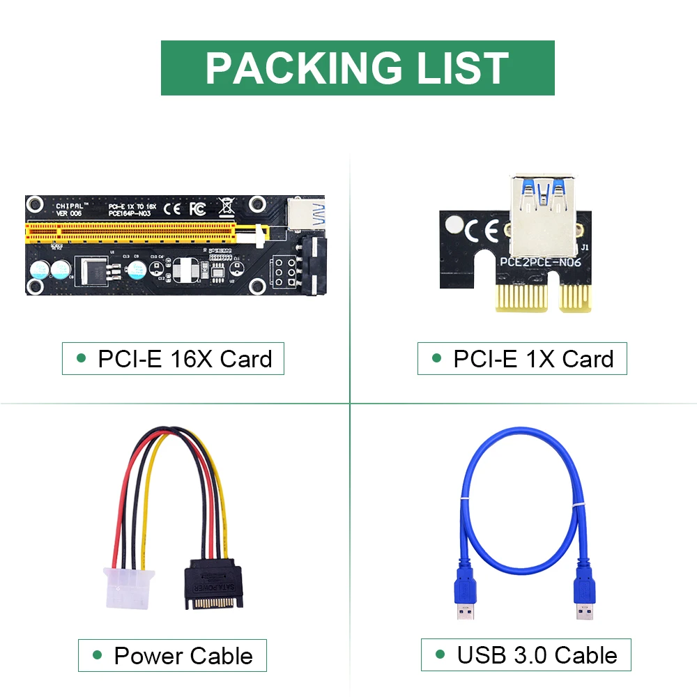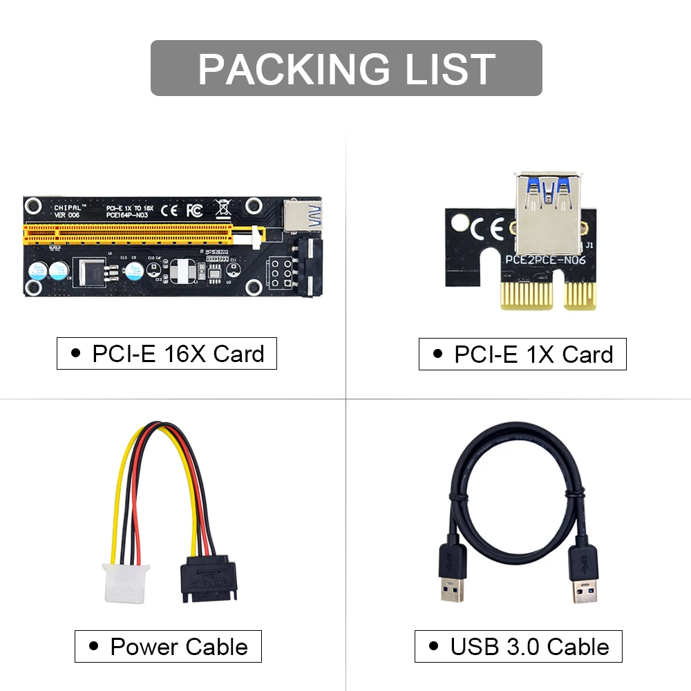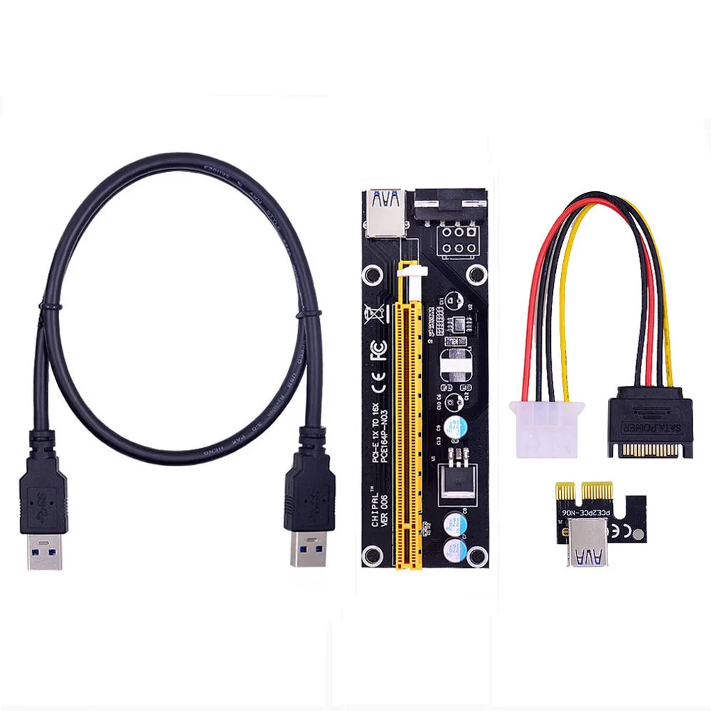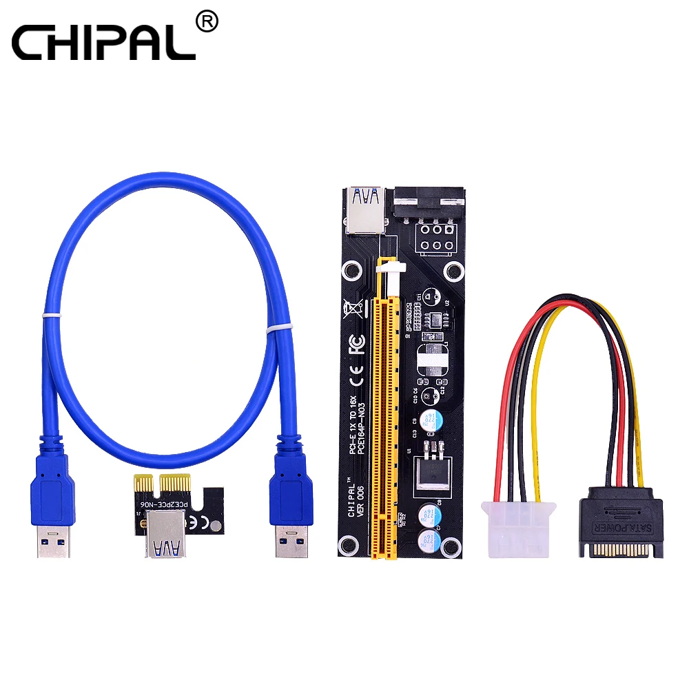CHIPAL 100 шт. 60 см VER006S PCI-E 1X до 16X Райзер карта расширения USB 3,0 кабельSATA к 4Pin шнур питания для видеографической карты