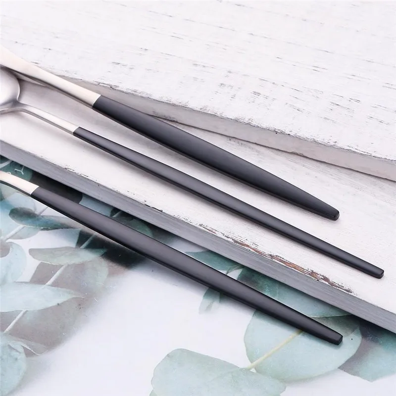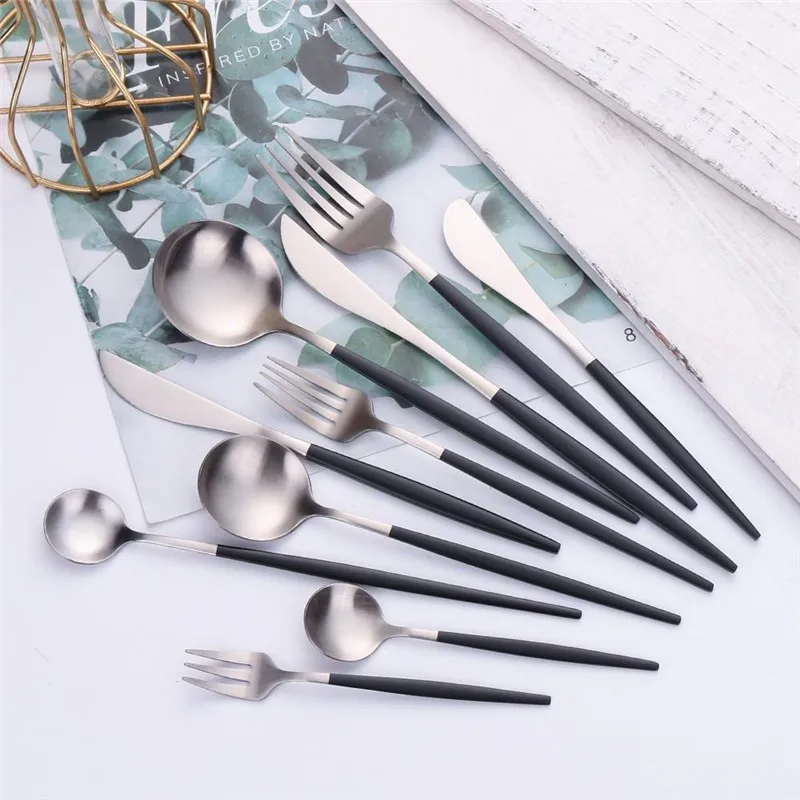 Горячее предложение, черная столовые приборы, чайная ложка, набор кухонной посуды для вечеринки, Столовые сервизы из нержавеющей стали