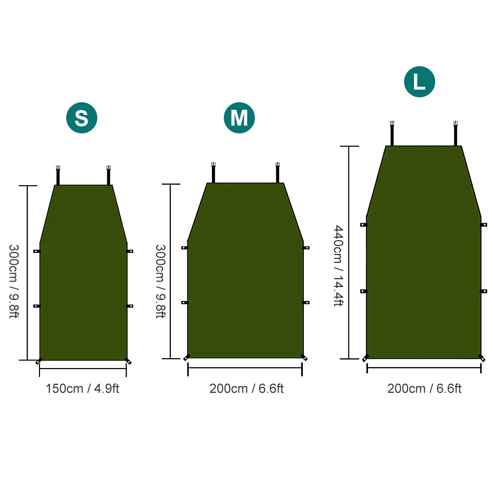 Навес изготовлен из качественной ткани Оксфорд с серебряным покрытием, анти-УФ и прочный. Он обеспечивает большое пространство для защиты от солнца и дождя, идеальный выбор для кемпинга, пляжа, пикника, спортивного мероприятия и других видов активного отдыха.Особенности:210D ткань Оксфорд с серебряным покрытием, износостойкая и УФ-защита.Большое пространство защищает вас от солнца и дождя.Легко установить и сложить, поставляется с сумкой для хранения для удобной переноски.Отлично подходит для кемпинга, пляжа, пикника, спортивного мероприятия и т. д.Характеристики:Материал: 210D ткань ОксфордЦвет: черный/армейский зеленый/хаки/серый (на выбор)Размер: S / M / L (опционально)S: 300*150 см/9,8*4,9 футовРазмер посылка: 60*23*3 см/23,6*9*1,2 дюймаВес: 1,35 кг/3 фунтаM: 300*200 см/9,8*6,6 ФутовРазмер посылка: 60*23*5 см/23,6*9*2 дюймаВес: 1,45 кг/3,2 фунтаL: 440*200 см/14,4*6,6 ФутовРазмер посылка: 60*23*8 см/23,6*9*3,1 дюймаВес: 1,7 кг/3.7lbПосылка:1 * тент2 * Полюс8 * Peg2*8 метров веревка4*3 м веревки1 * сумка для переноски