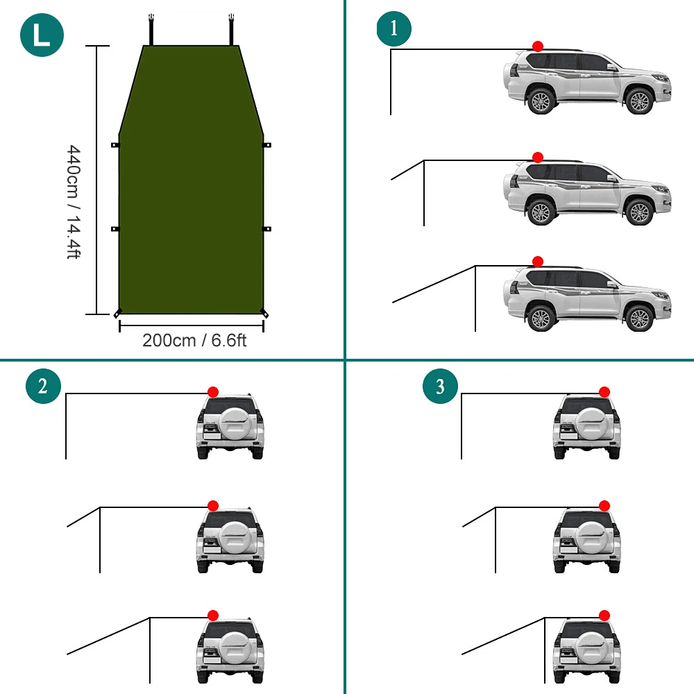4,4x2 м автомобильный навес, палатка на крышу для внедорожника, автомобиля, наружный, кемпинг, путешествия, пляж, солнцезащитный козырек