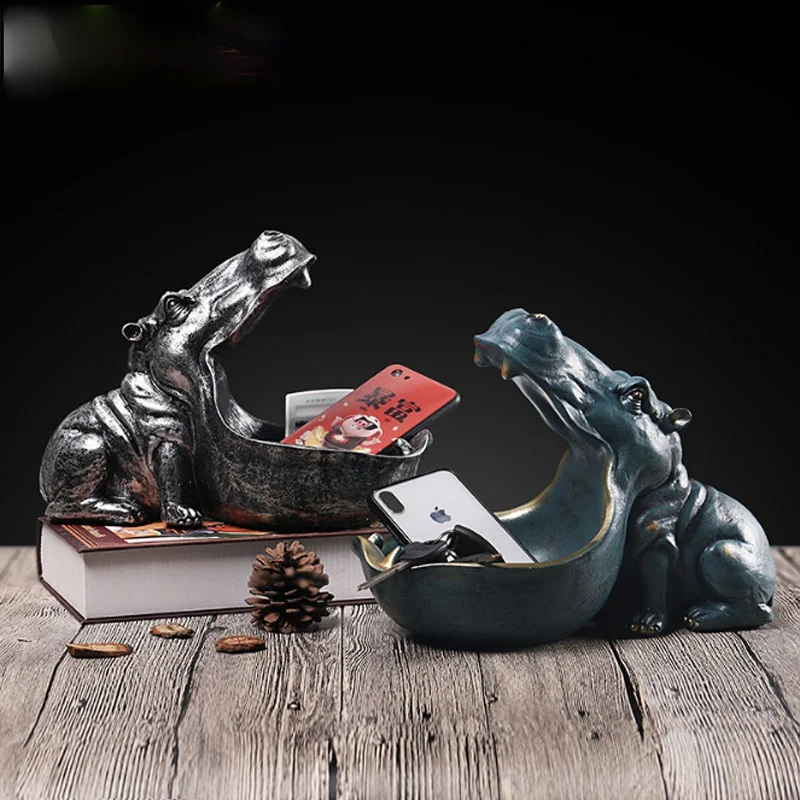 Статуя гиппопотама из смолы, статуэтка гиппотама, статуэтка, контейнер для конфет, украшение для дома, аксессуары для украшения стола