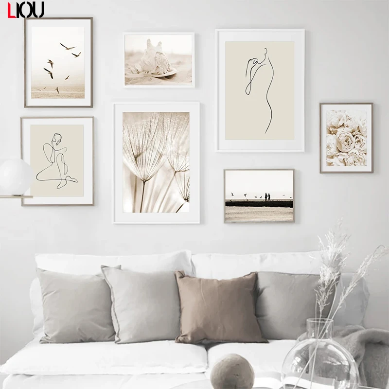 Настенная живопись на белом холсте Одуванчик розовая абстрактная линия искусство скандинавские постеры и настенные принты картины для декора гостиной