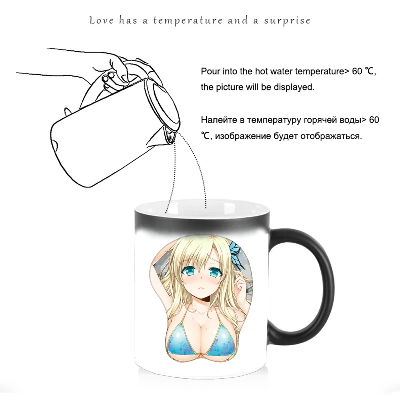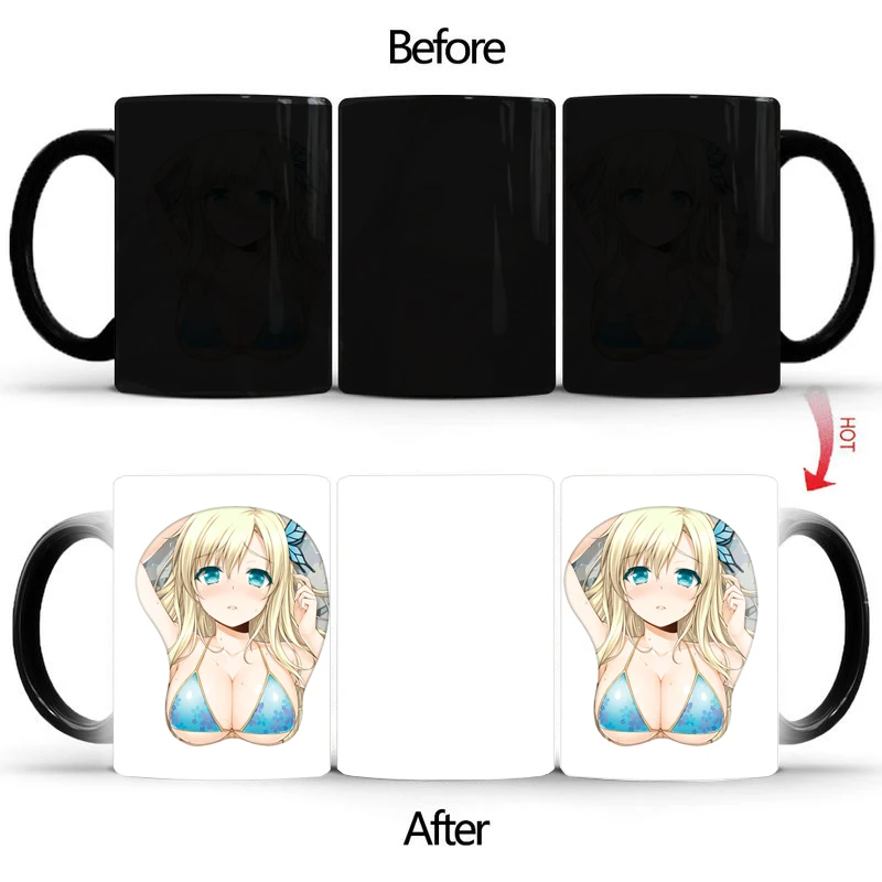 Кофейная кружка для девочек с большой грудью, аниме, Термочувствите...