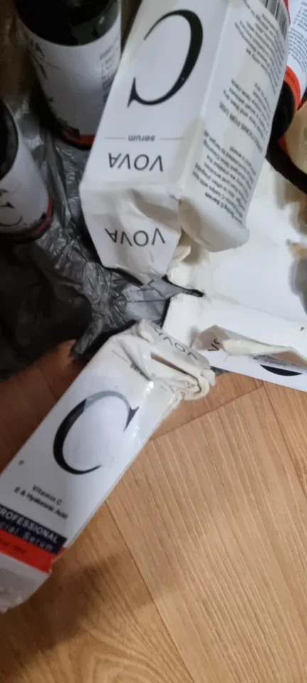 Поврежденная коробка, хотя продукт внутри идет хорошо. Сыворотка липкая, поэтому я могу использовать ее только ночью