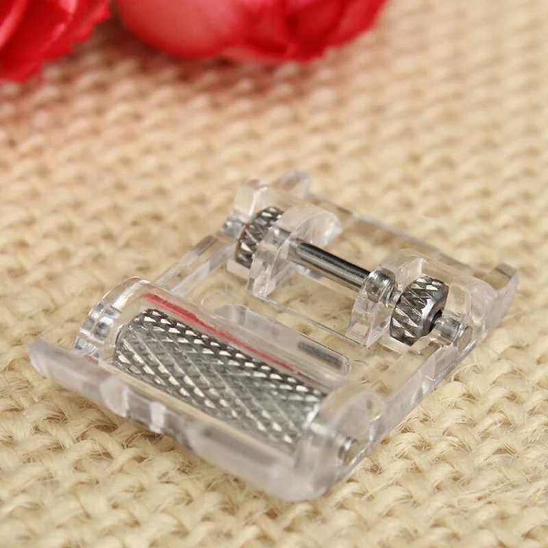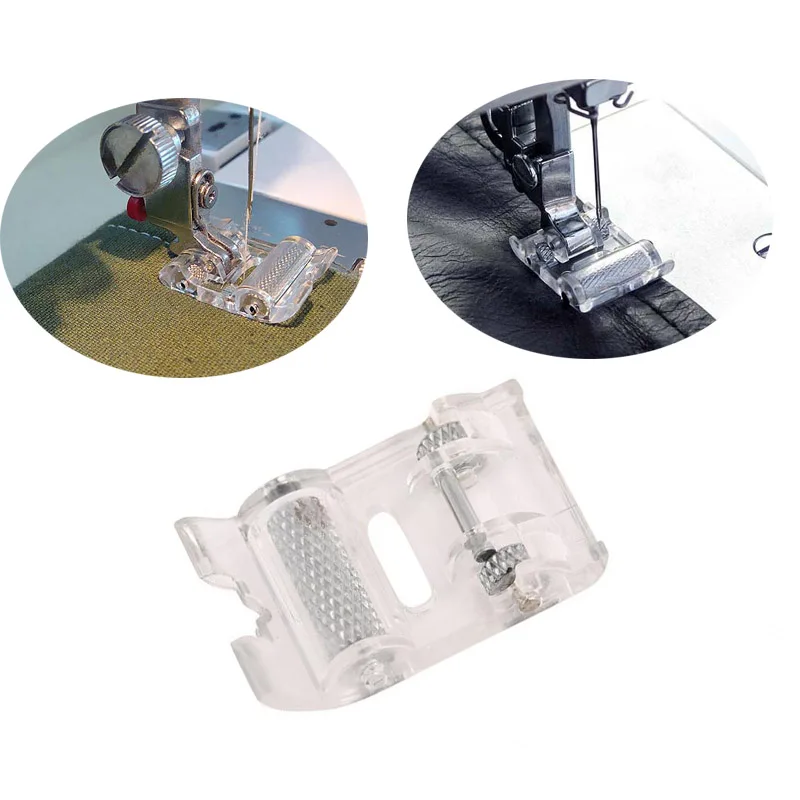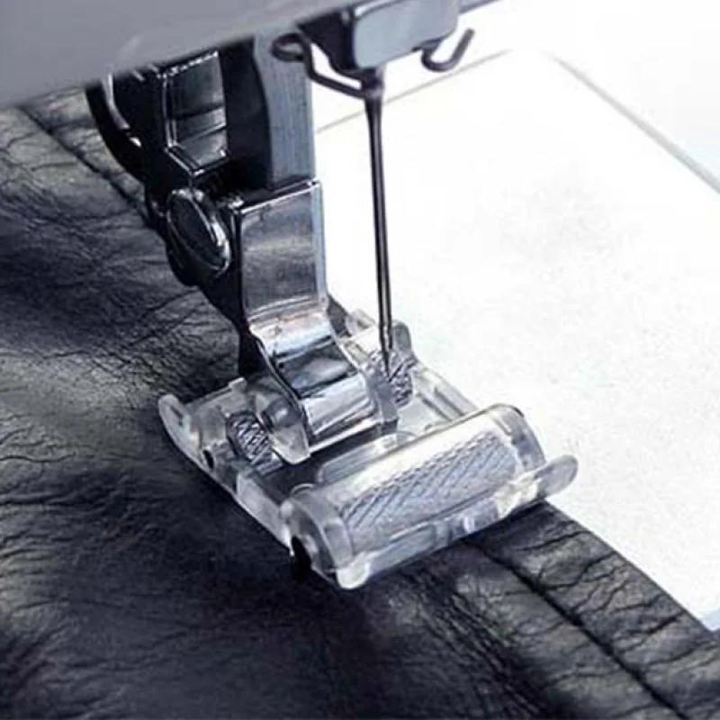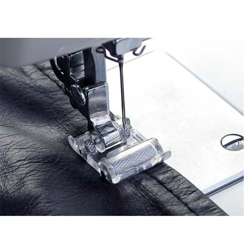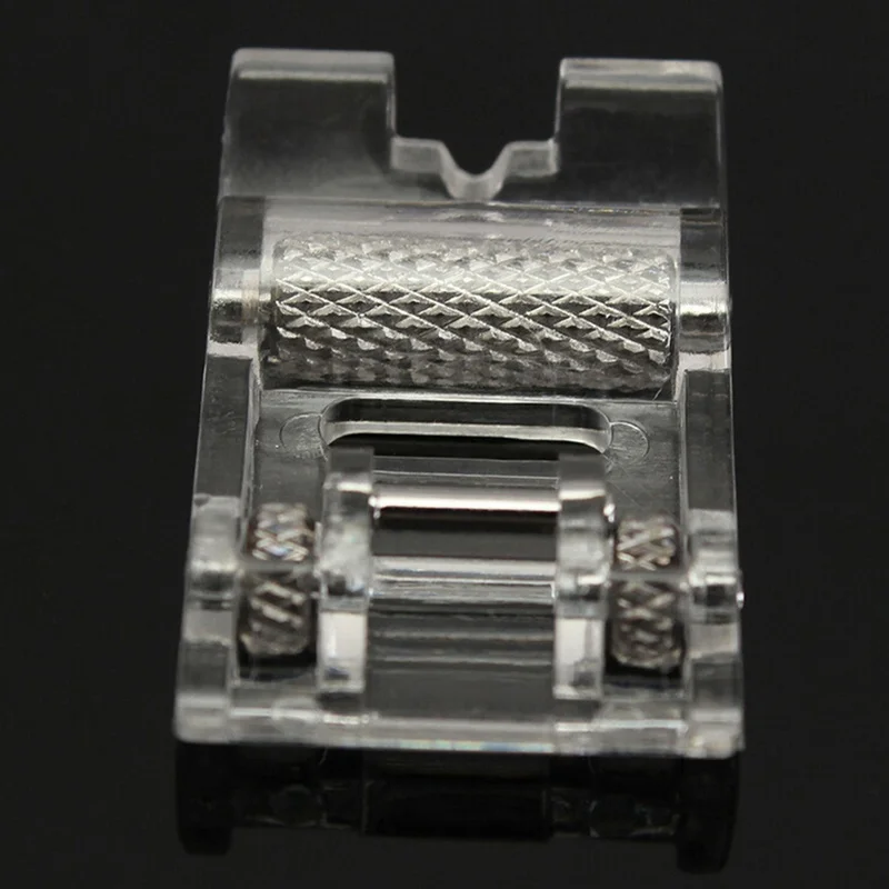 Лапка изготовлена из прозрачного пластика с металлическими роликами. Помогает кормить ткань и предотвратить поломку иглы, разрыв нити, смещение или пропуск стежков, вызванных натягиванием ткани.