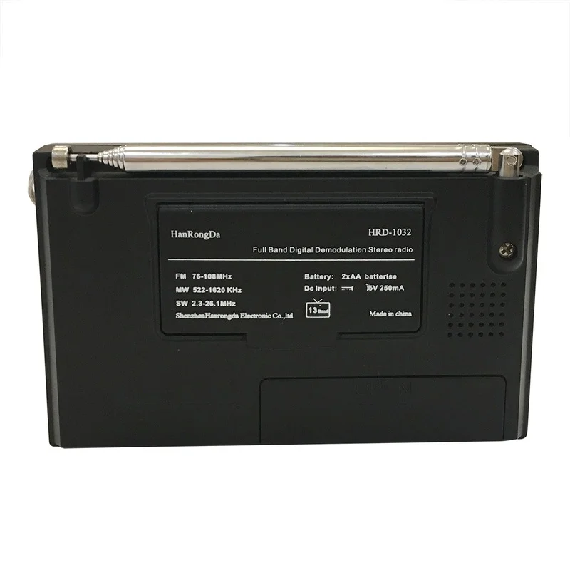 FM:76-108 МГцМВт: 520-1710 кГцSW: 3,20-21,9 МГц2. Чувствительность:FM:≤ 18 дБMW≤ 10 мВ/мSW:≤ 60μV"3. Степень искажения: ≤ 1%4. Одиночный выбор сигнала: ≤ 10 дБ5. Машинный динамик: Ф50 мм/8 Ом/0,5 Вт6. Внешний наушник: ф3.5мм/32Ω × 27. Можно установить функцию времени/будильника8. Коротковолновая Настройка семи полос, есть независимые коротковолновые кнопки9. Источник питания: 3 в (батарейки: 2 × aa)10. Внешний источник питания: 5 В11. Стерео разделение: ≥ 32 дБ12. Размер: 120 × 74 × 26 (мм)