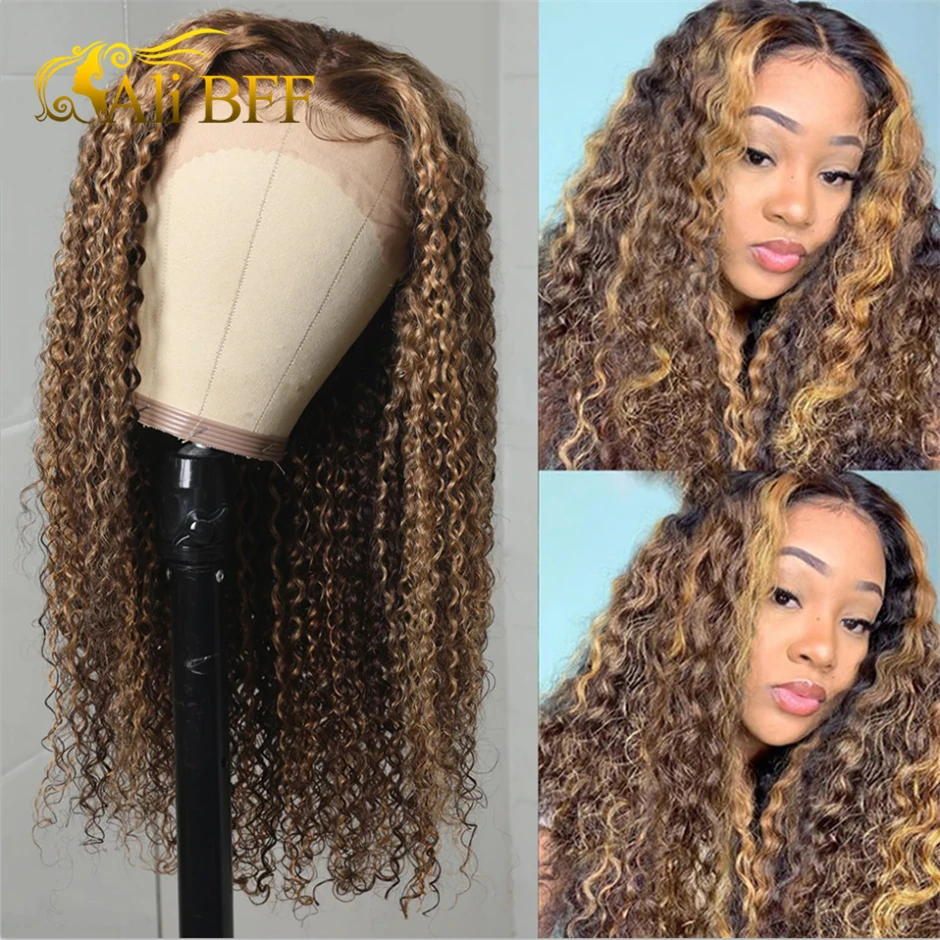 Парик с застежкой на сетке 4x4, парик из вьющихся человеческих волос, 427 выделение, Омбре, коричневые парики на сетке спереди, для женщин, 13X4 парики из человеческих волос спереди на сетке
