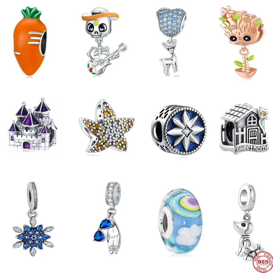 Браслет и ожерелье Pandora из серебра 2021 пробы с подвеской в виде моркови, черепа, морской звезды, замка