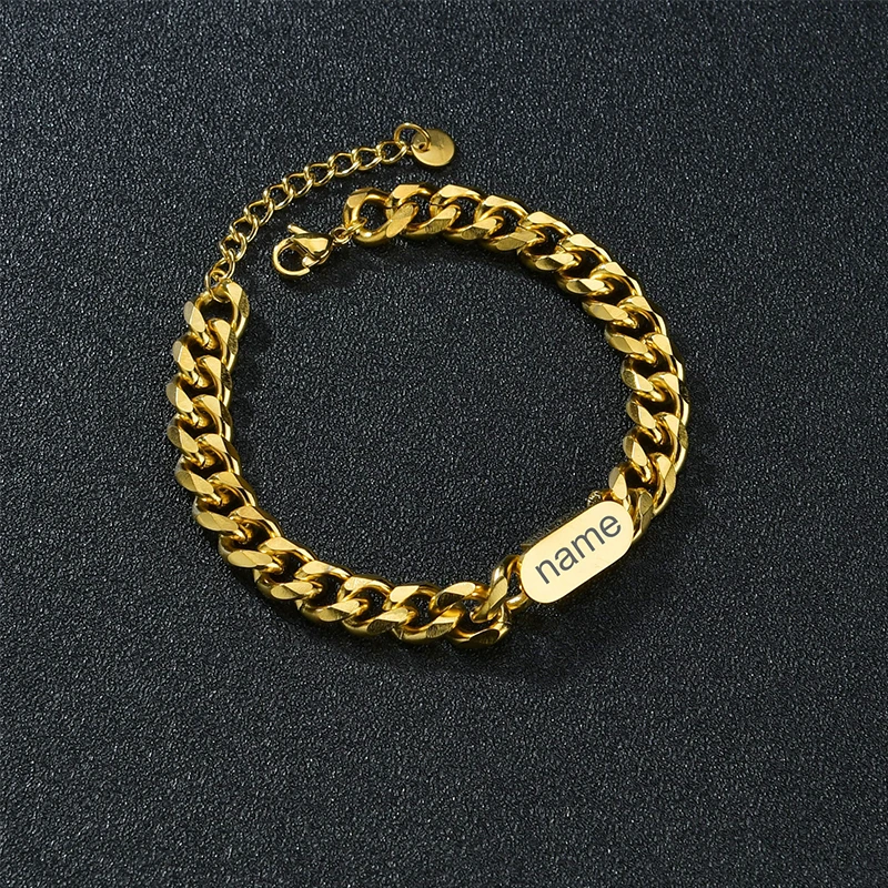 Имя:Goxijite браслет с выгравированным именем для женщин и мужчин из нержавеющей стали, персонализированная Регулируемая табличка, золотой браслет, креативный подарок