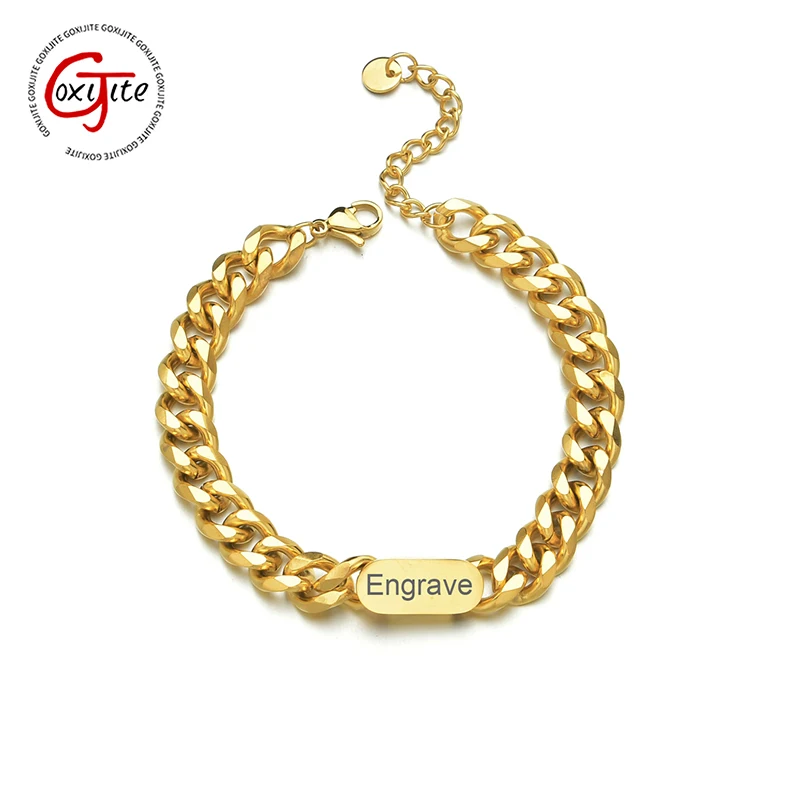 Браслет Goxijite с выгравированным именем для женщин и мужчин, из нержавеющей стали, регулируемый, золотой, креативный подарок