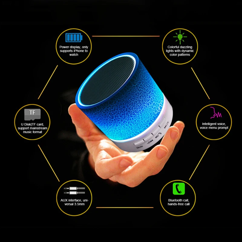 Мини-динамик Bluetooth со светодиодной подсветкой, беспроводной дин...