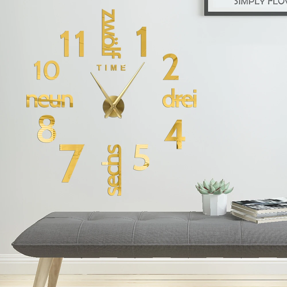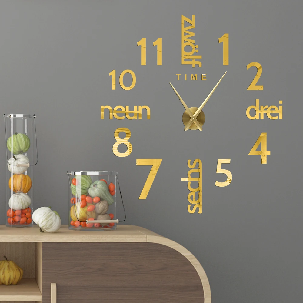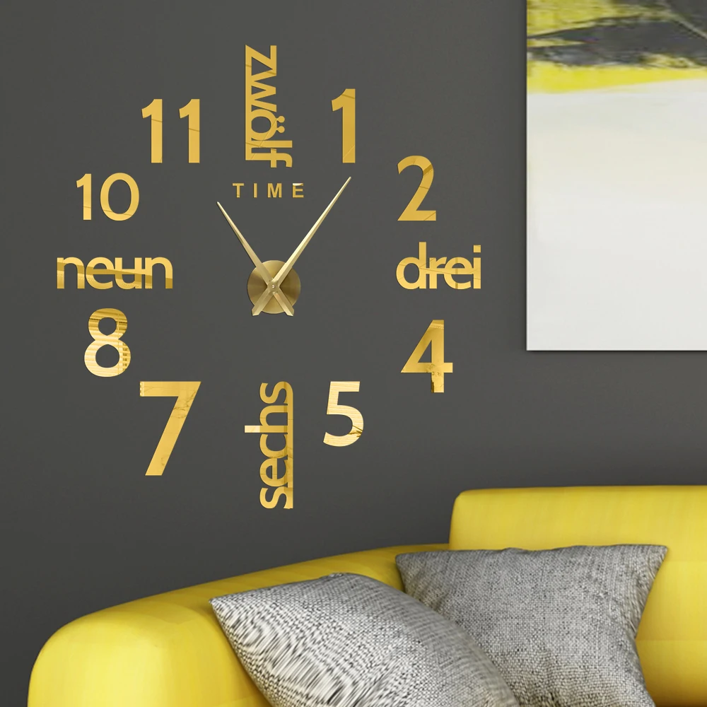 Современные большие настенные часы, 3D зеркальные наклейки, уникальные часы с большими цифрами, украшение сделай сам, настенные часы, художественные наклейки, наклейка, Современное украшение для дома