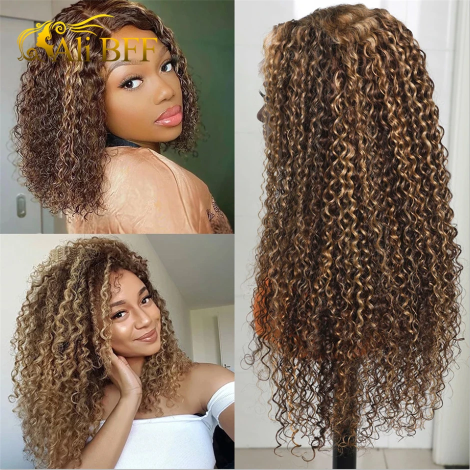 Парик с застежкой на сетке 4x4, парик из вьющихся человеческих волос, 427 выделение, Омбре, коричневые парики на сетке спереди, для женщин, 13X4 парики из человеческих волос спереди на сетке