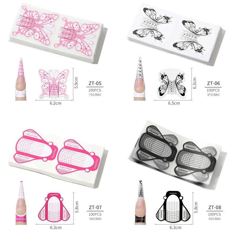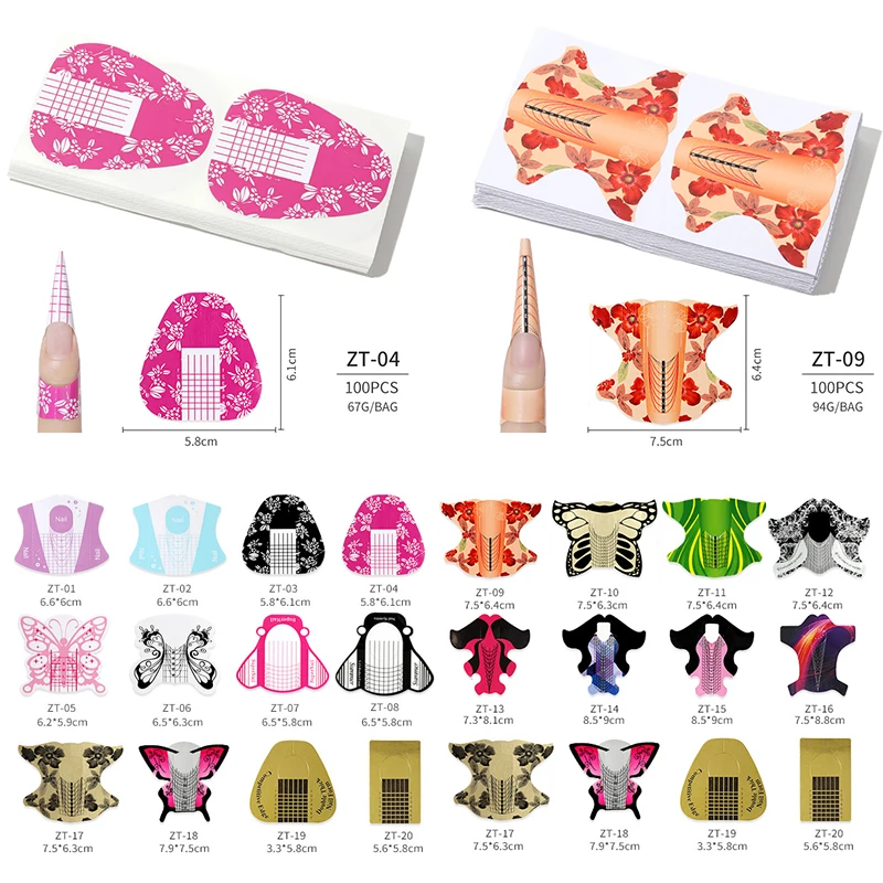 100pcsset Professional Nail Forms Self-Adhesive Nail Art Paper Tray...