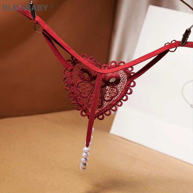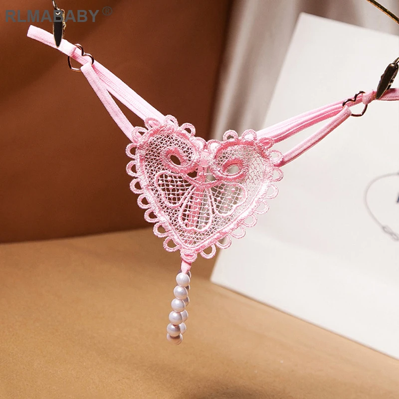 Стринги женские кружевные с жемчугом, винтажные любовные сердца, с низкой посадкой прозрачный