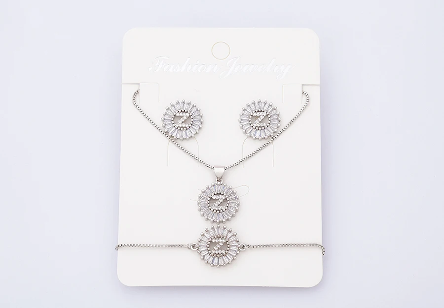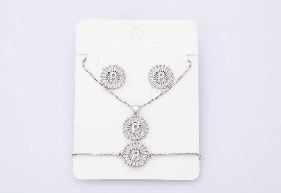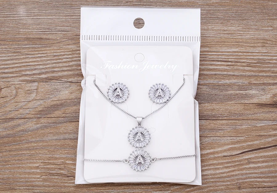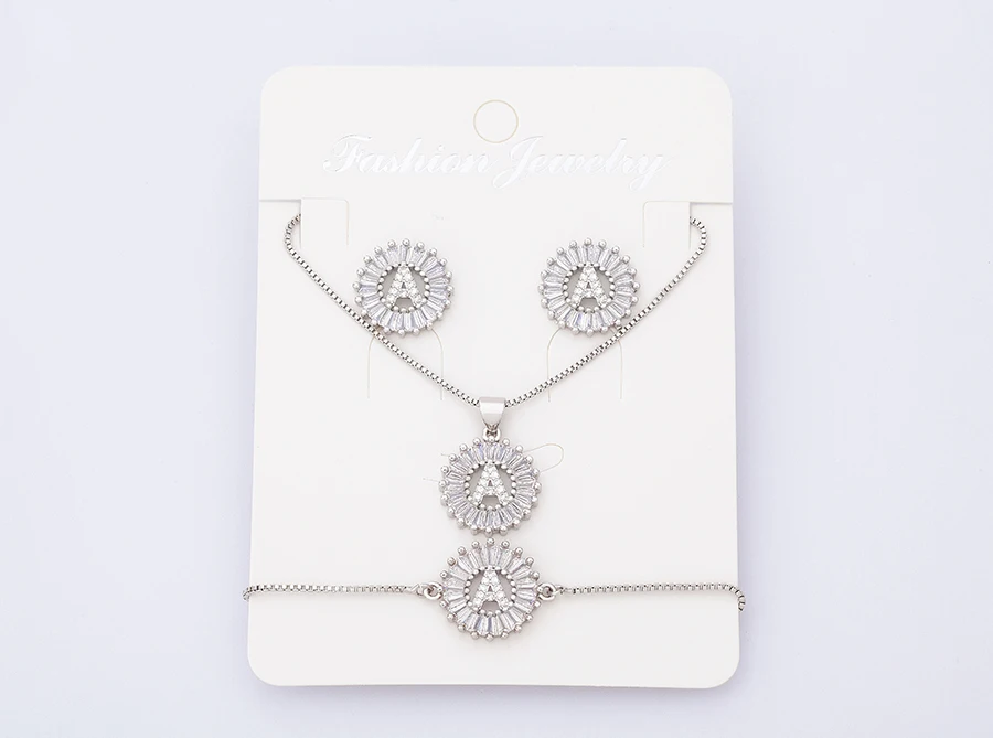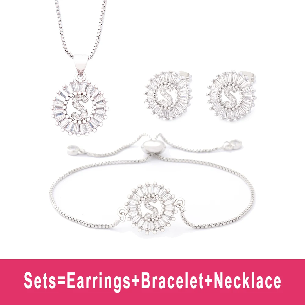 Ожерелье с подвесками, серьги-гвоздики, браслеты, ювелирные изделия из меди и циркона белого цвета, A-Z, 26 букв, аксессуары с алфавитом