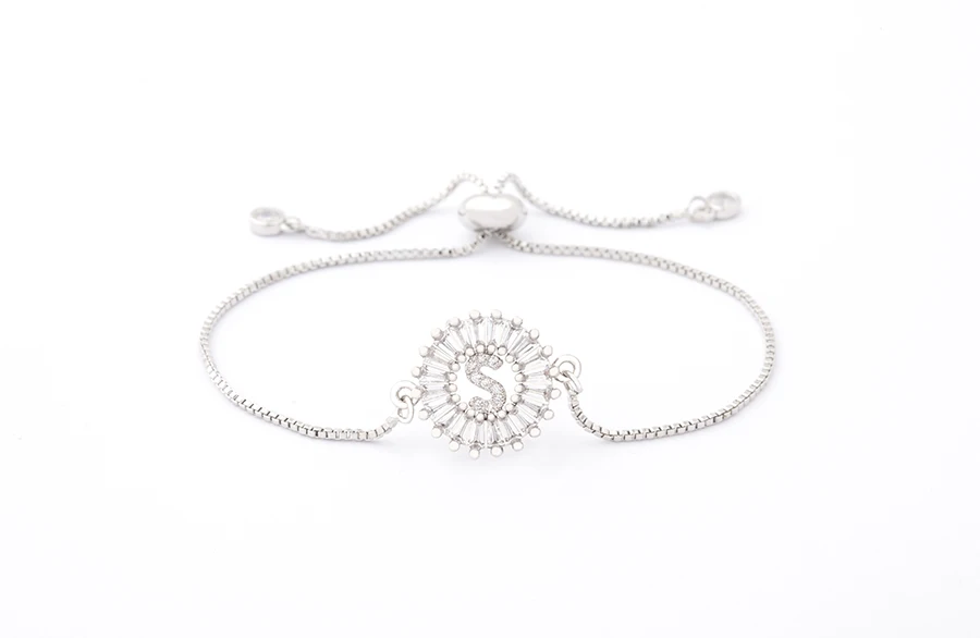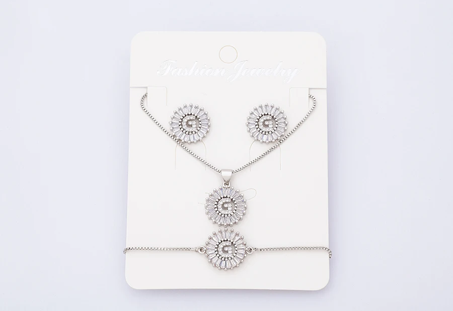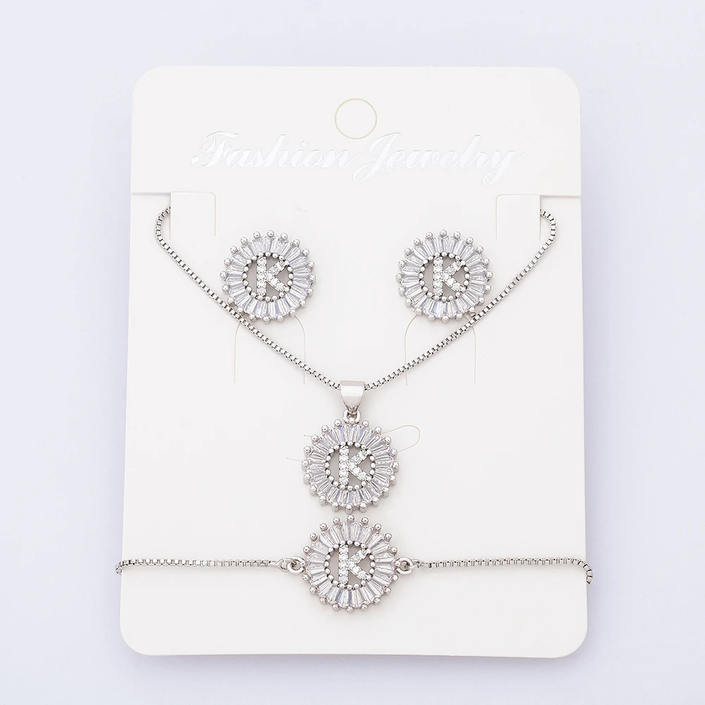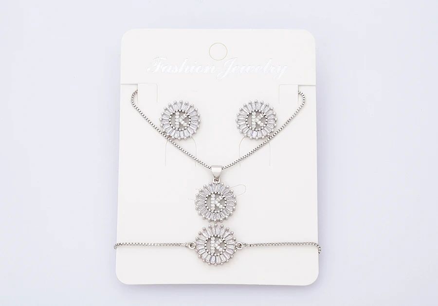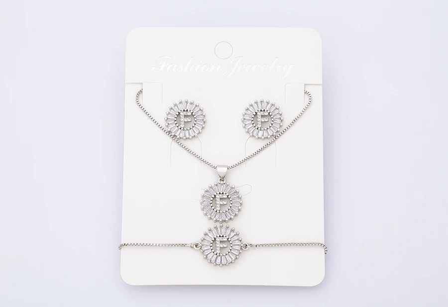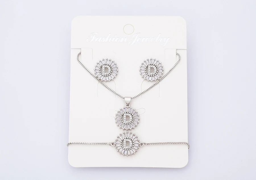 Ожерелье с подвесками, серьги-гвоздики, браслеты, ювелирные изделия из меди и циркона белого цвета, A-Z, 26 букв, аксессуары с алфавитом