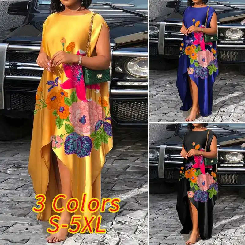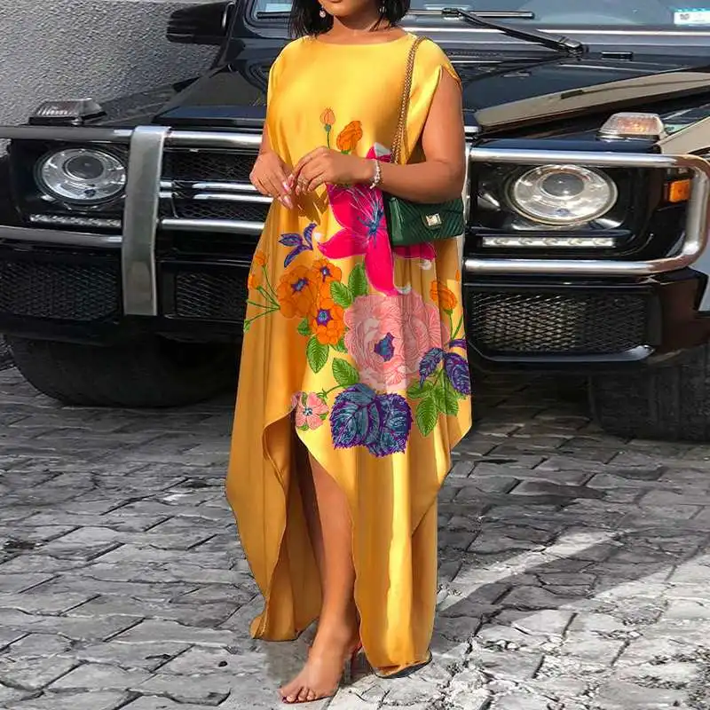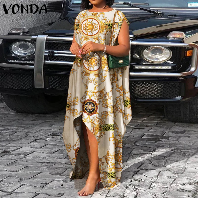 Летнее платье VONDA 2022, женские винтажные Атласные Платья с цветочным принтом, свободные сексуальные богемные платья без рукавов с асимметричным подолом, большие размеры