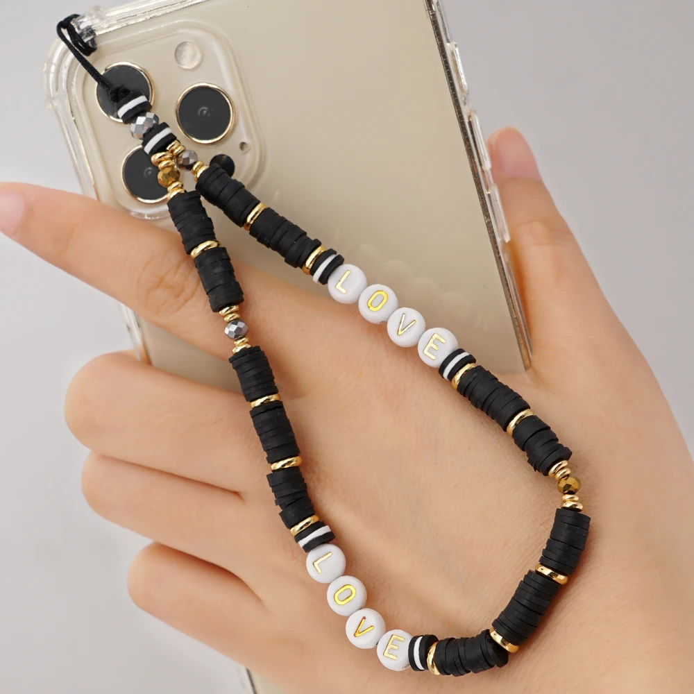Go2Boho цепочка для телефона Шарм бусы ремень телефон ювелирные изделия сглаза шнурок для телефона Полимерная глина буквы любовь Heishi наручные чаи