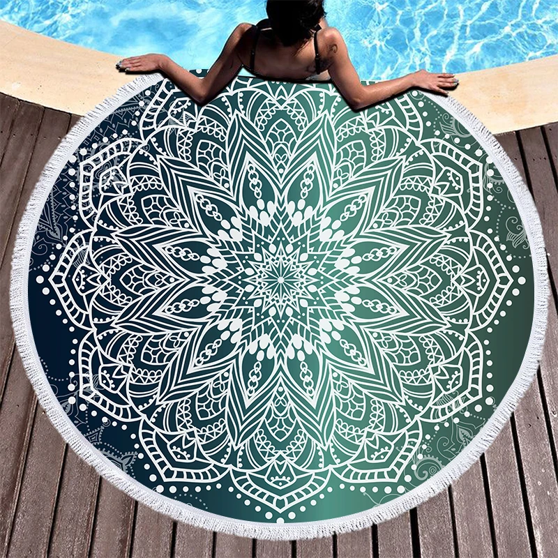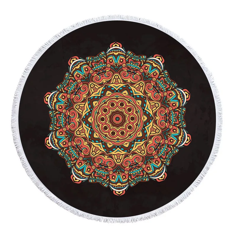 Пляжное полотенце Мандала с цветами, большой круглый 150 см, пляжно...