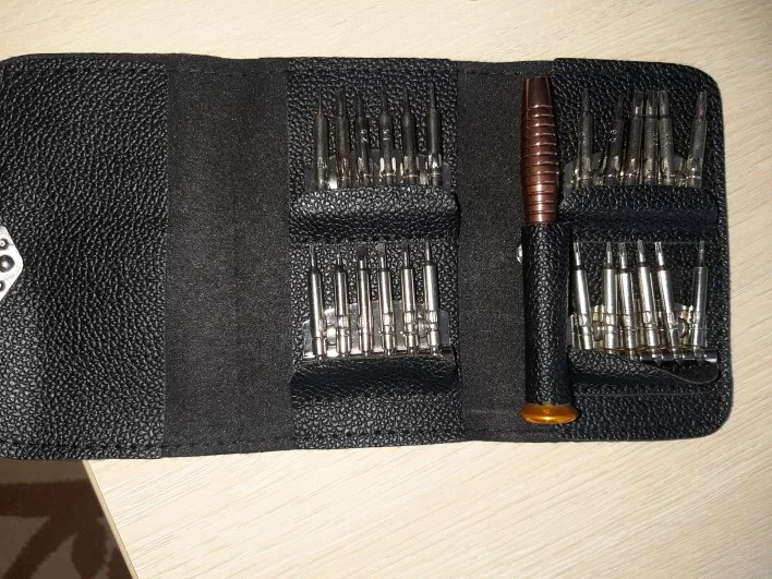 Заказал, такой наборчик, откручивать всякие мелкие винтики у часов, телефонов.Доставка DPD, две недели, в пункт выдачи.Футляр из кожзама, сшит так себе,но пойдет.В наборе к сожалению нет насадок под шестигранники.А так вполне себе приличный набор.
