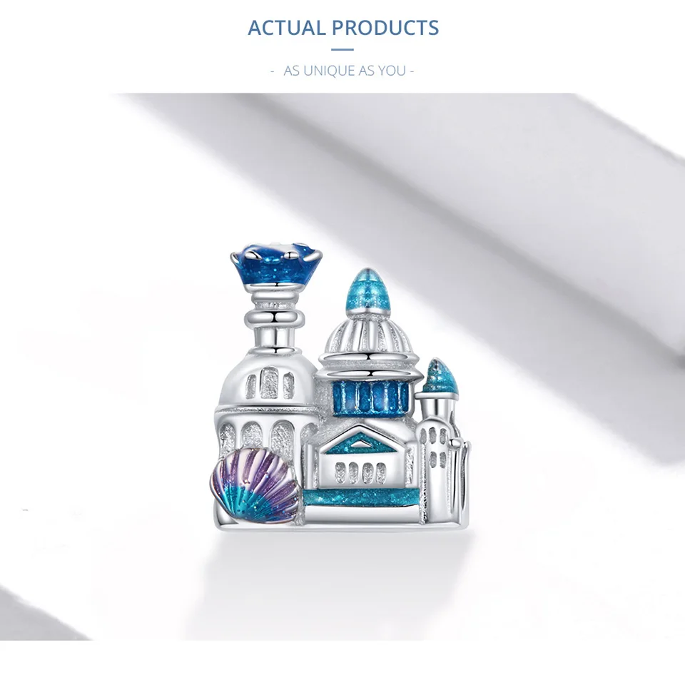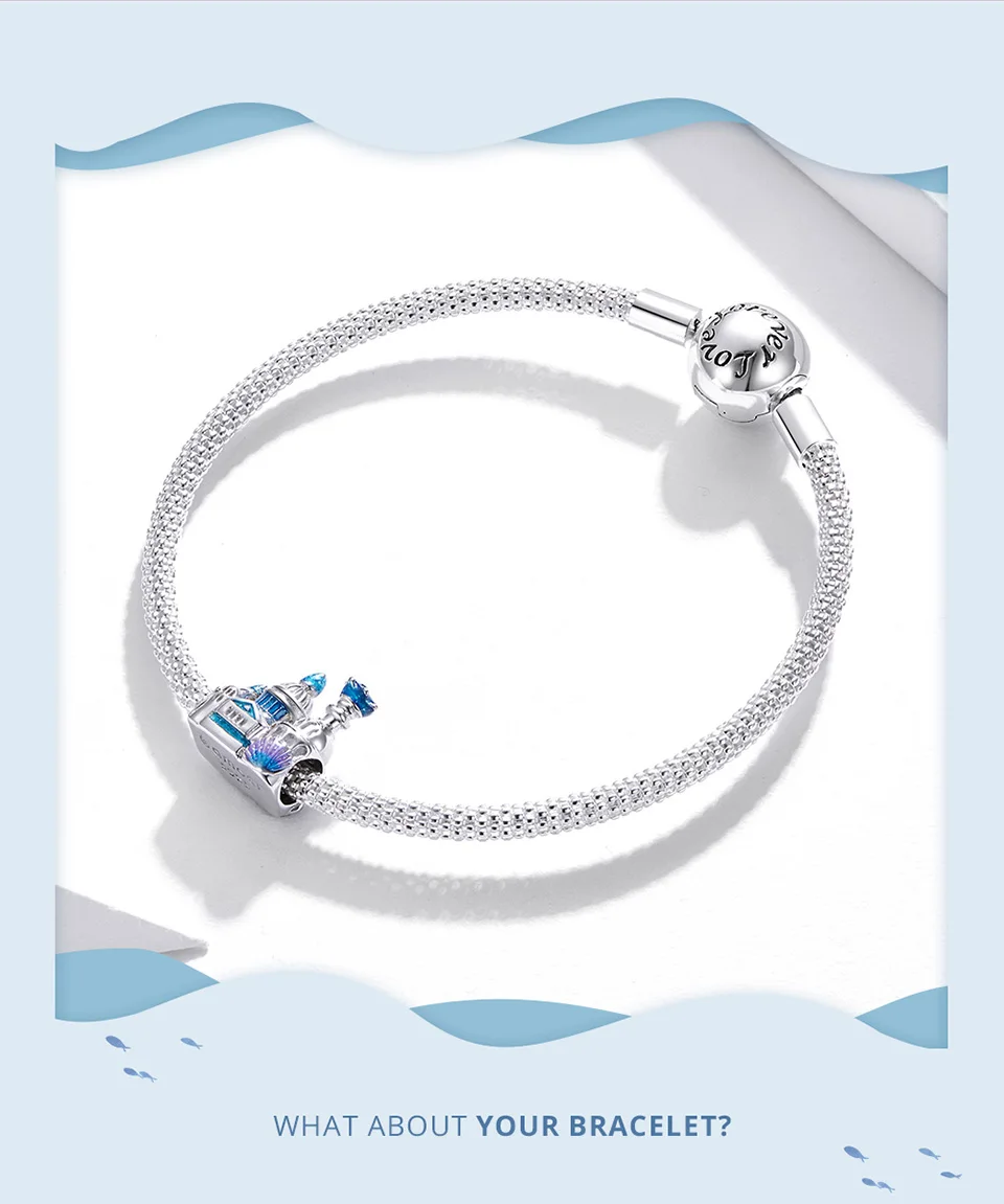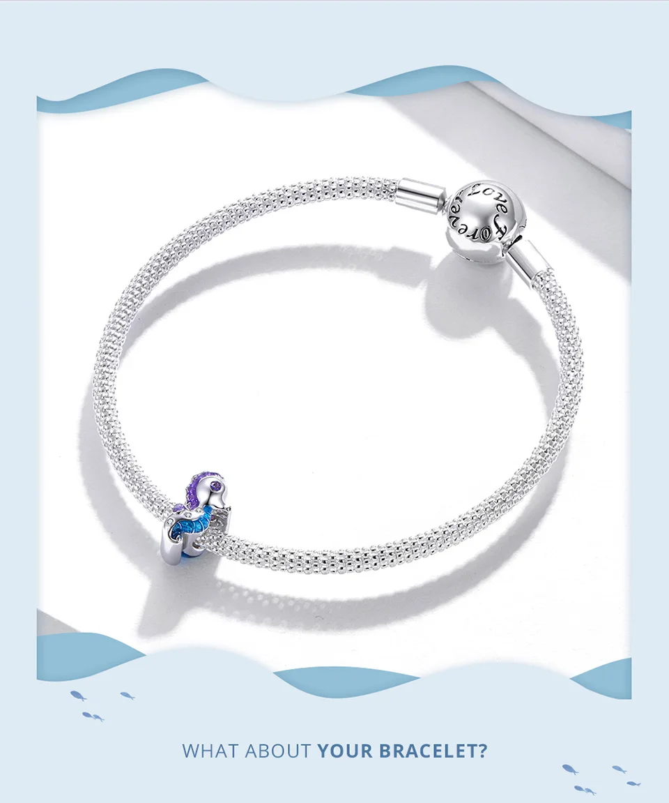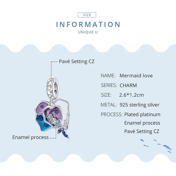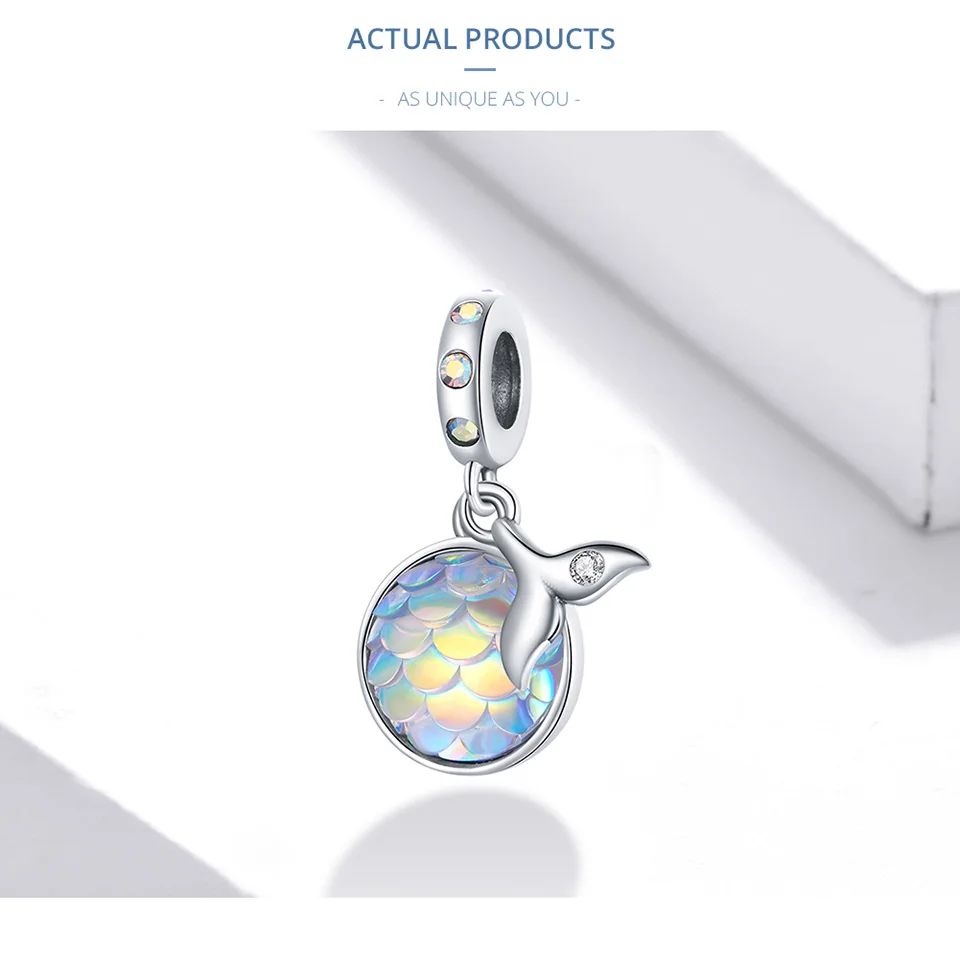 Подвеска для браслета, серебряная эмалированная, в виде морского хвоста