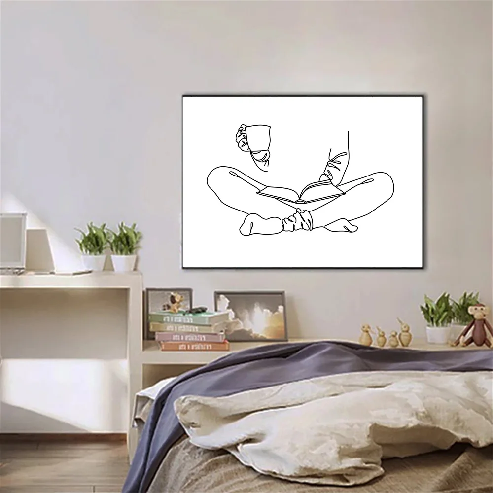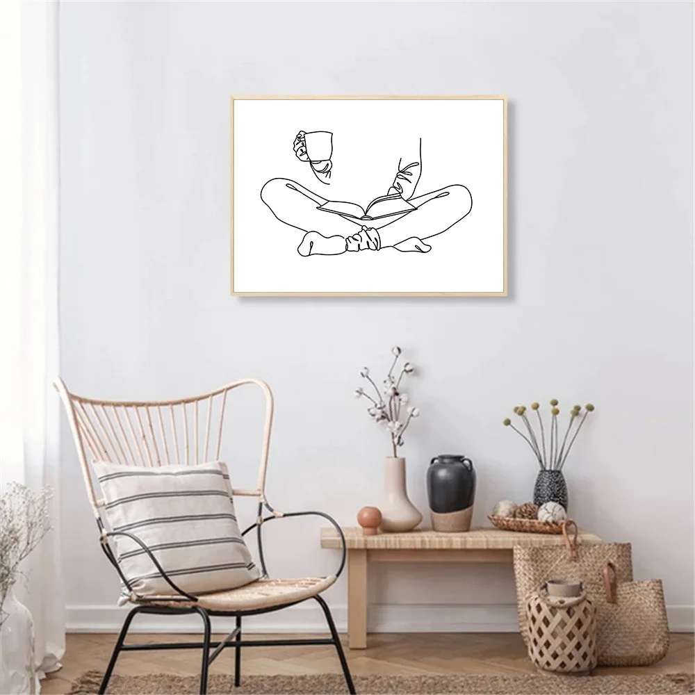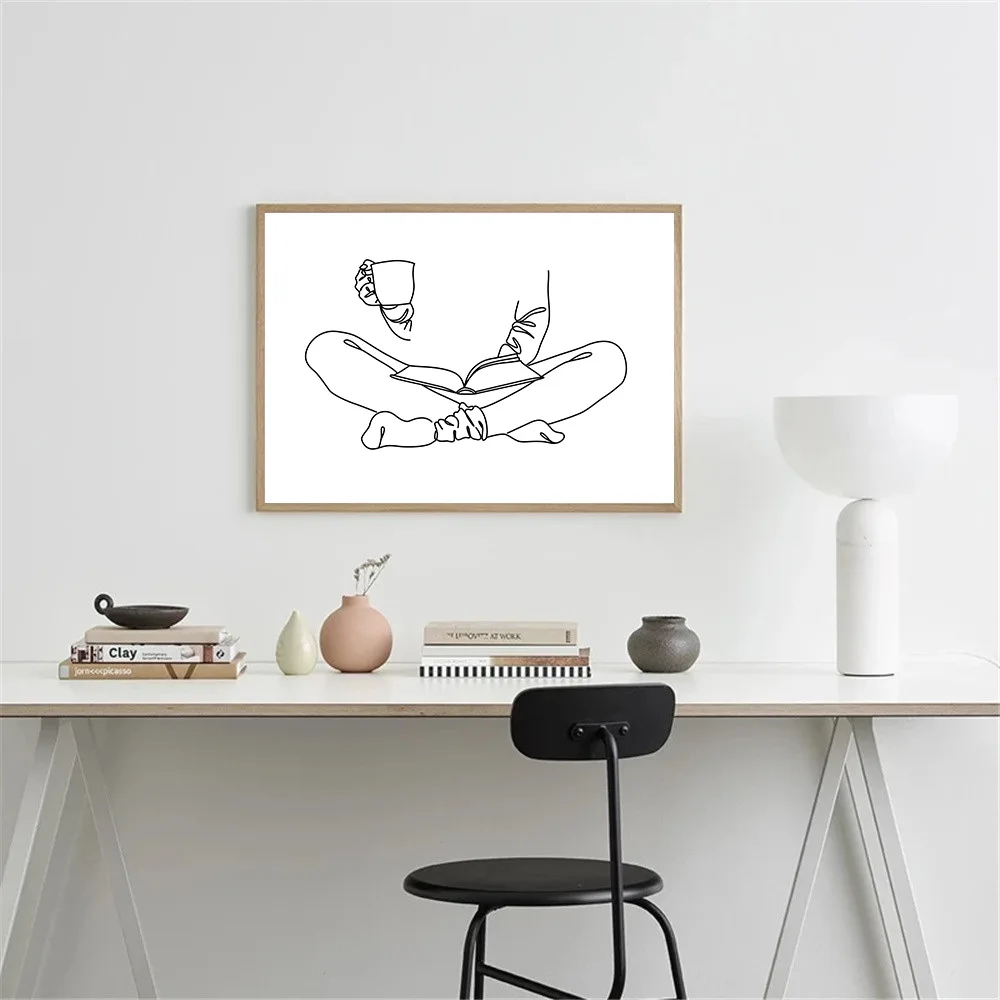 Абстрактная линия рисунок на стену плакат питьевой кофе читать книги художественные принты черно-белая Картина на холсте минимализм домашний декор