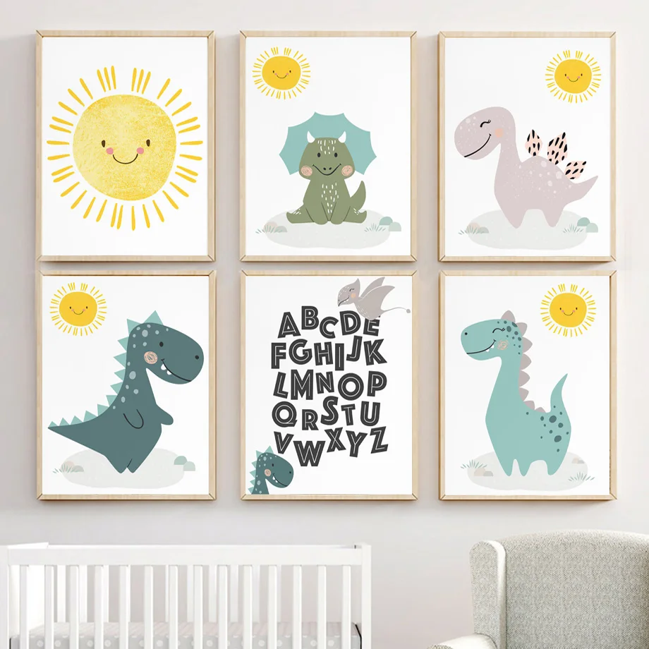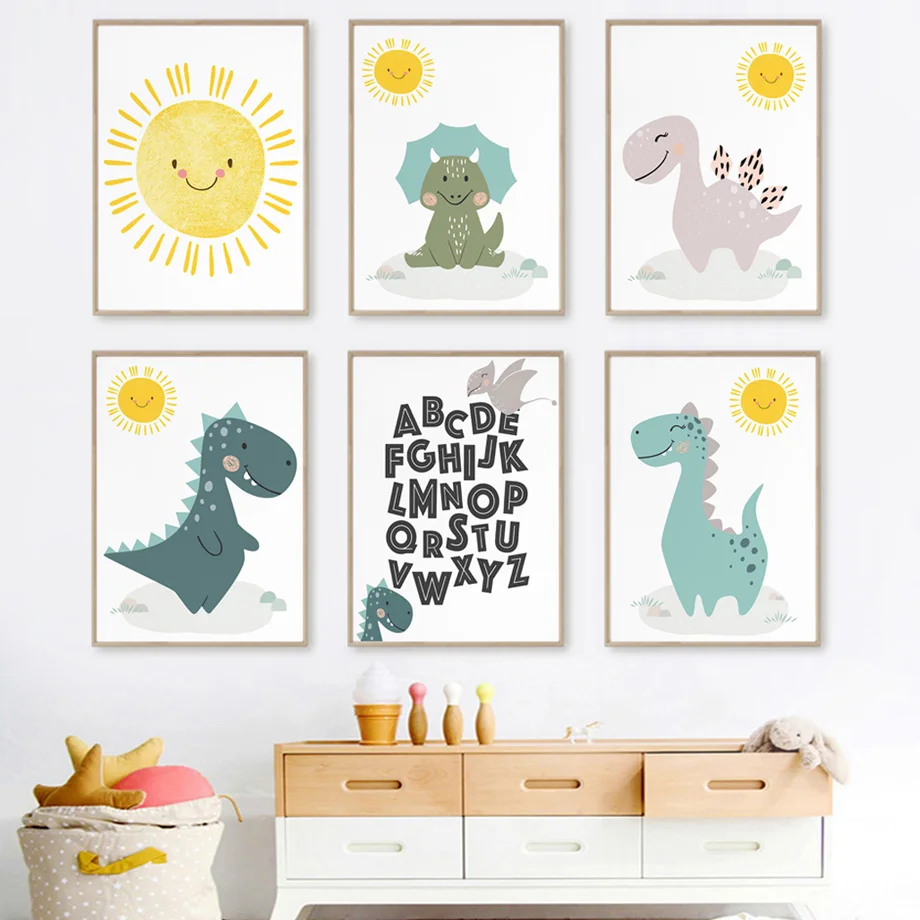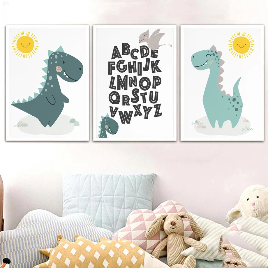 Настенная картина с алфавитом, тираннозавр, в скандинавском стиле