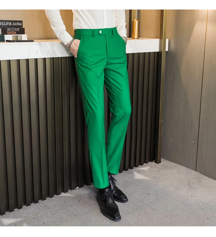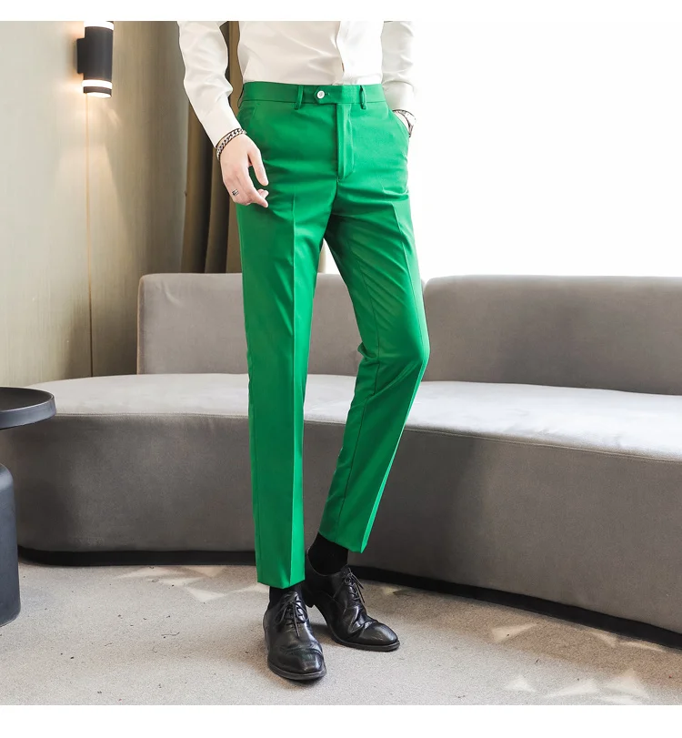 Брюки IEFB Мужские приталенные до щиколотки, деловые штаны, 10 цветов, зеленые фиолетовые хаки, черные белые желтые, 9Y8330