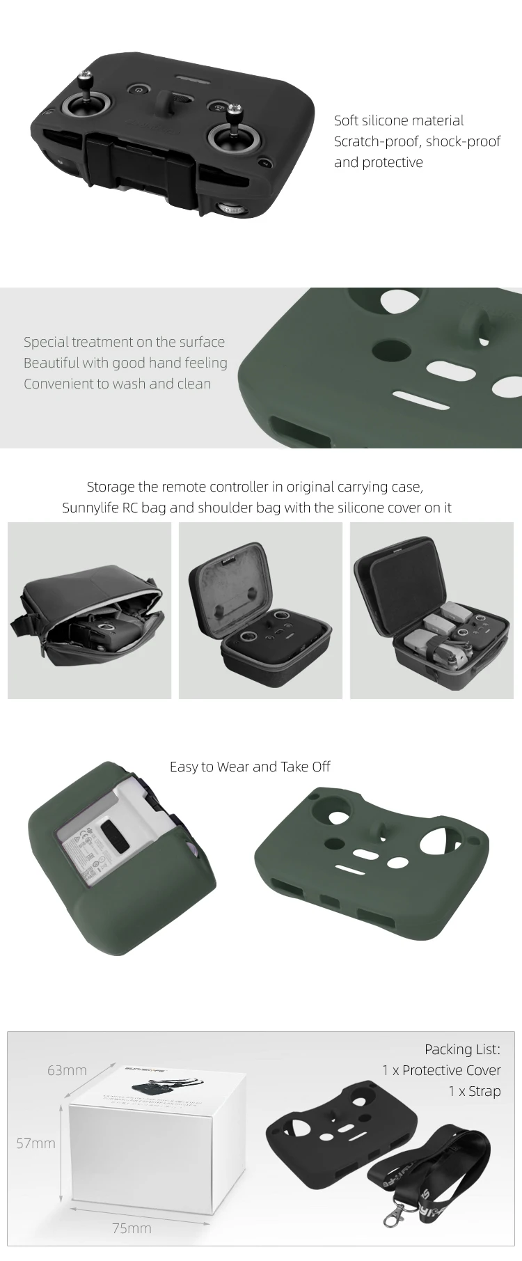 AОсобенности:1. Подходит для пульта дистанционного управления DJI Mavic Air 2/ 2S,2. Защитный чехол пульта дистанционного управления изготовлен из мягкого силикона,3. Может эффективно предотвратить транспортные столкновения и царапины,4. Простая установка и простота в эксплуатации.Характеристики:Цвет: черный, зеленыйМатериал: мягкий силиконПосылка включает в себя:1X Защитный чехол для пульта дистанционного управления1X Ремешок для шеиПримечание:Контроллер, сотовый телефон, не входит в комплект только для справки спасибо!