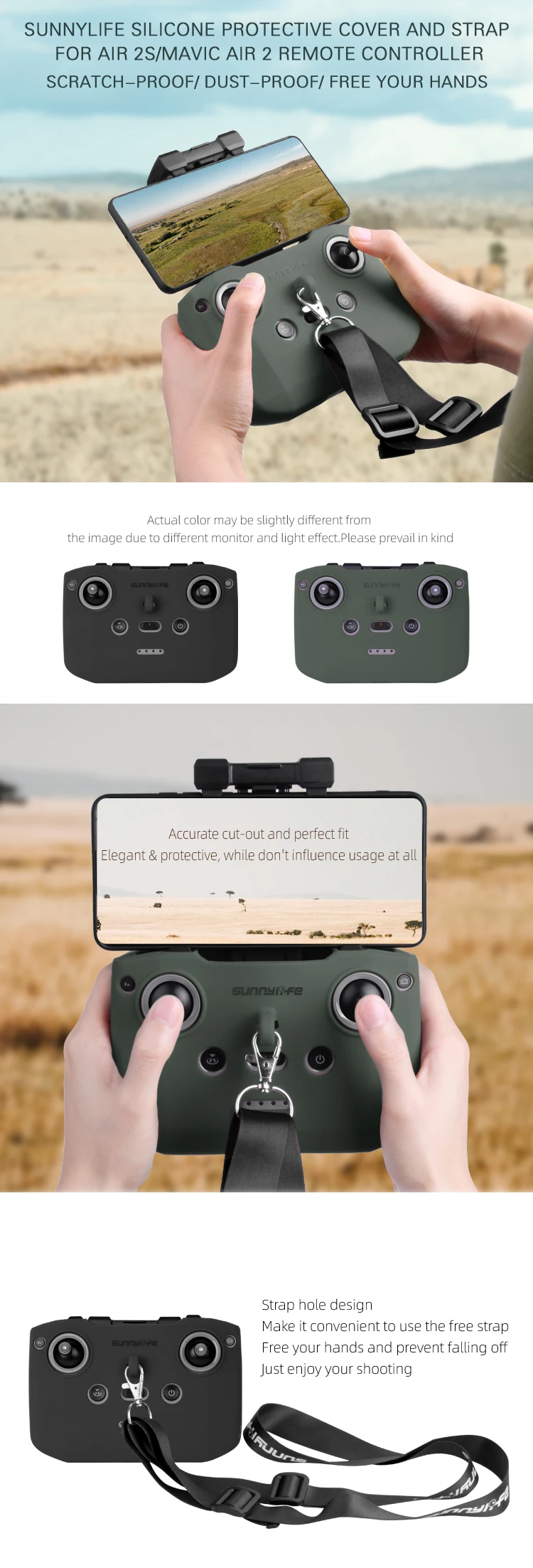 BОсобенности:1. Удобно использовать ремешок с держателем напрямую и освободить руки, не влияет на использование пульта дистанционного управления и не блокирует экран телефона,2. Изготовлен из высококачественных материалов, шейный ремешок удобный и прочный, а кронштейн для шнурка прочный и устойчивый,3. Пряжка на ремешке позволяет регулировать длину ремня, что делает его более удобным и удобным в использовании,4. Он легкий, очень удобно носить с собой, прост в установке и демонтаже,5. Этот шейный ремешок предназначен для пульта дистанционного управления дроном DJI Mavic Air 2/Air 2S.