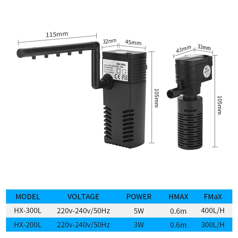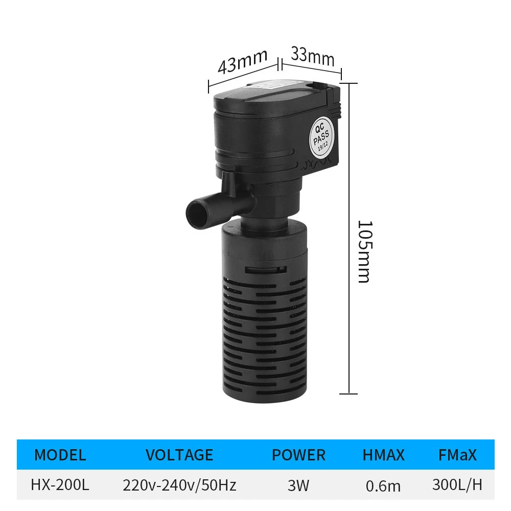 Внутренний аквариумный фильтр 3 в 1 Увеличение содержания кислорода фильтрации водяной насос мини погружной аквариум фильтр подходит 60L-180L 200L/ч