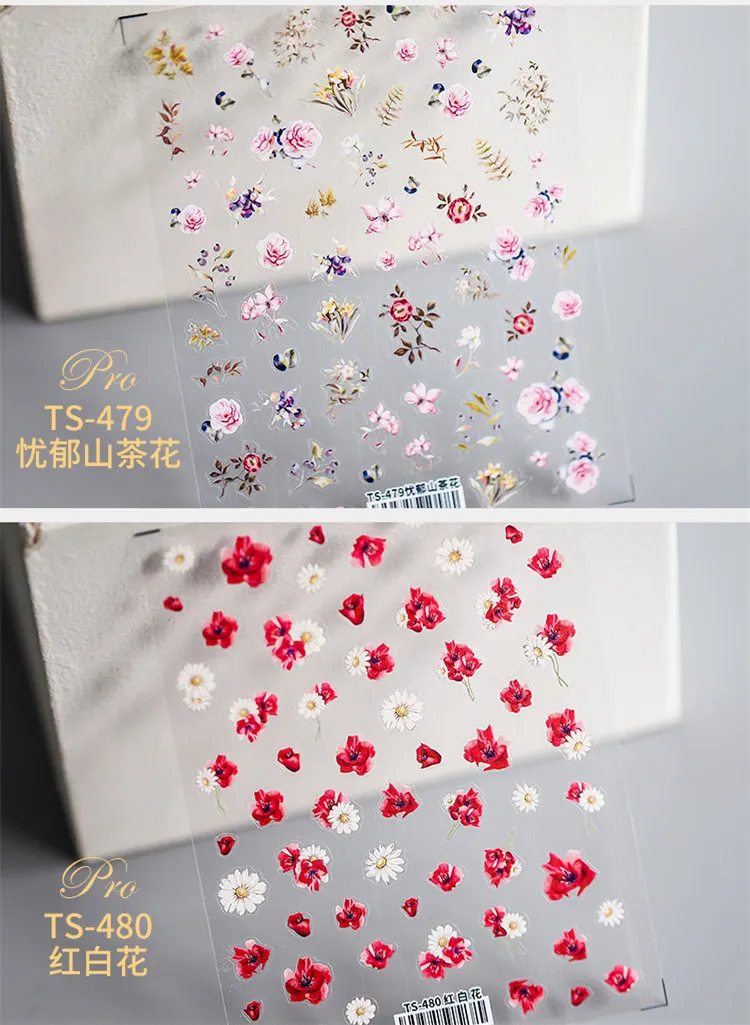 1 шт. 3D наклейки с маргаритками для оформления дневного света, белые прозрачные цветочные наклейки для ногтей, наклейки с цветущими розовыми листьями, клейкие наклейки, обертывания