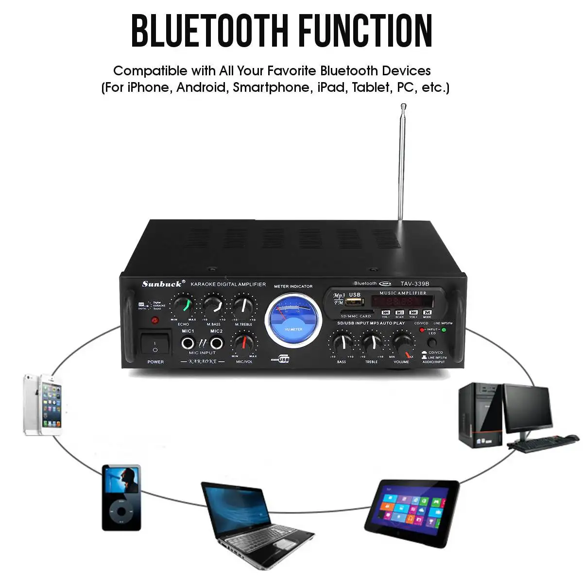 Цифровой Hi-Fi-усилитель, 220 В, Bluetooth, FM-радио, 2 канала, USB, SD