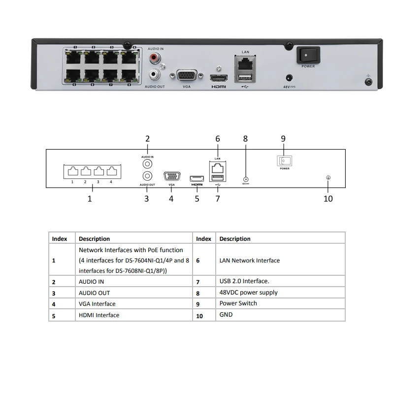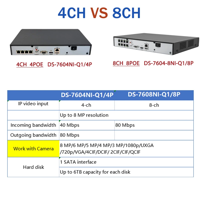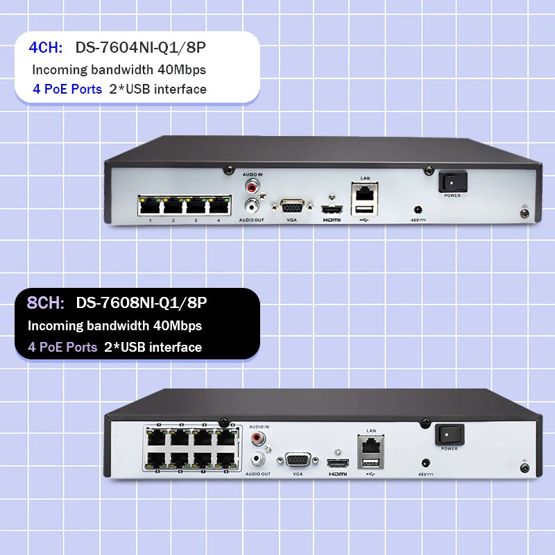 DS-7608NI-Q1/8P DS-7604NI-Q1/4P8/4-ch 8/4 PoE 1U 4K NVR