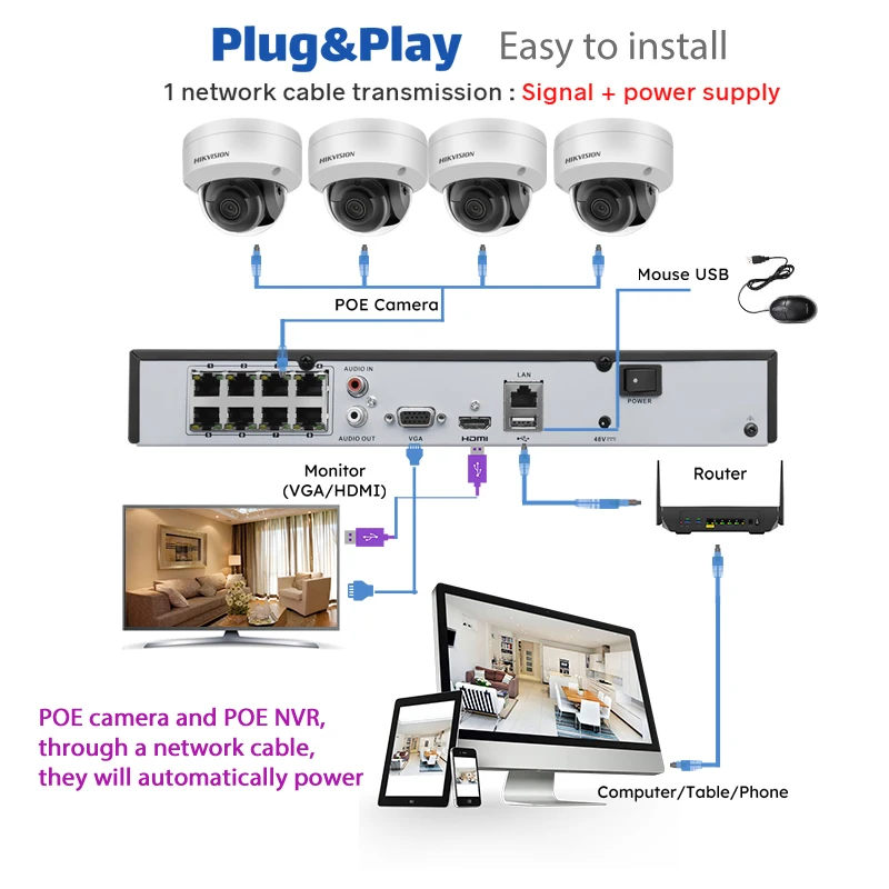 Работает со всеми камерами PoE, может похвастаться разрешением пикселей 3840x2160, обеспечивая высочайший уровень изображений, как никогда раньше.