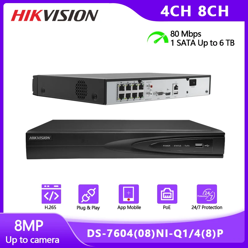 > Можно подключить ip-камеры до 4/8 каналов> Поддерживает декодирование H.265 +/H.265/H.264 +/H.264 видео форматов> До 1-ch @ 8MP или 5-ch @ 1080P Емкость декодирования> До 40/80 Мбит/с Высокая входящая полоса пропускания обеспечивает возможность подключения ip-камер> 1 HDD для непрерывной записи видео> Plug & Play с интерфейсами 4/8 Power-over-Ethernet (PoE).> Металлический чехол для профессиональной промышленности