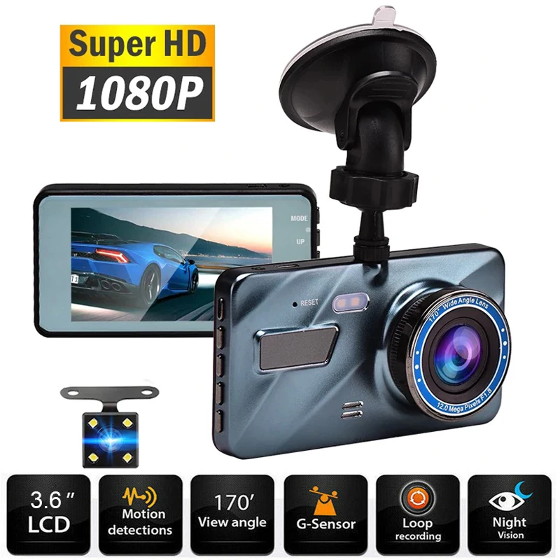 J16 Автомобильный видеорегистратор Камера заднего вида двойная камера видео 1080P Full HD 3,6 "циклическая запись ночное видение g-сенсор широкоугольный видеорегистратор