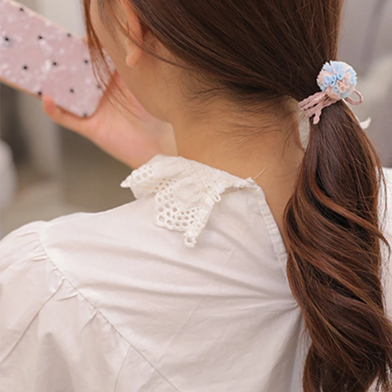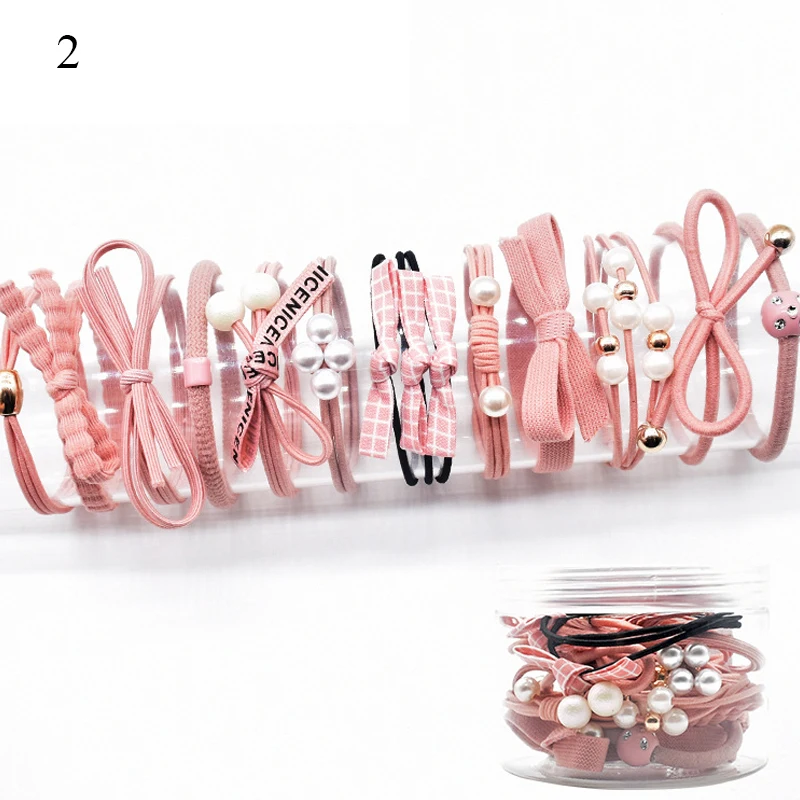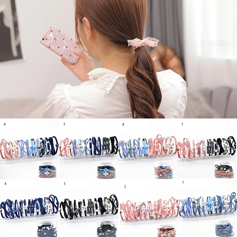 Резинка для волос с бантом для девочек, комплект из 12 эластичных резинок розового, синего, черного цветов, с завязками, 12 шт.