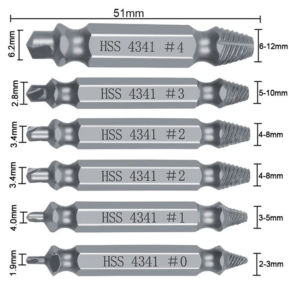 Комплект из 6 шт. устройство для извлечения болтов Двусторонняя дре...