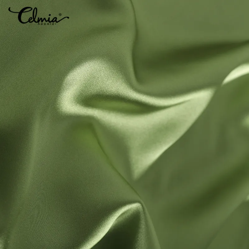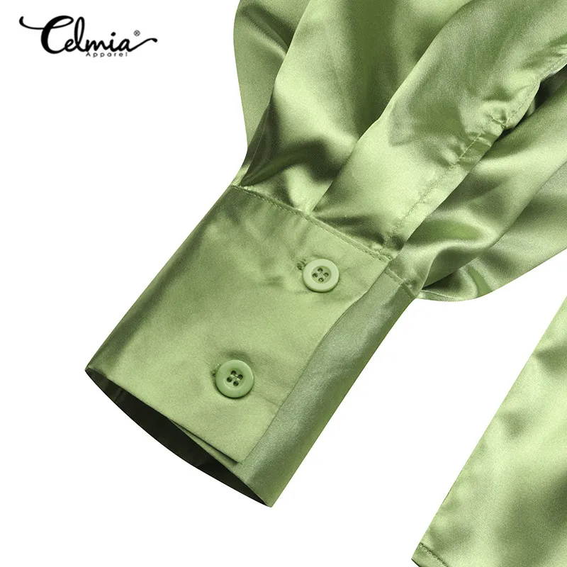 2022 Celmia атласные топы, женская модная Глянцевая блузка с рукава...