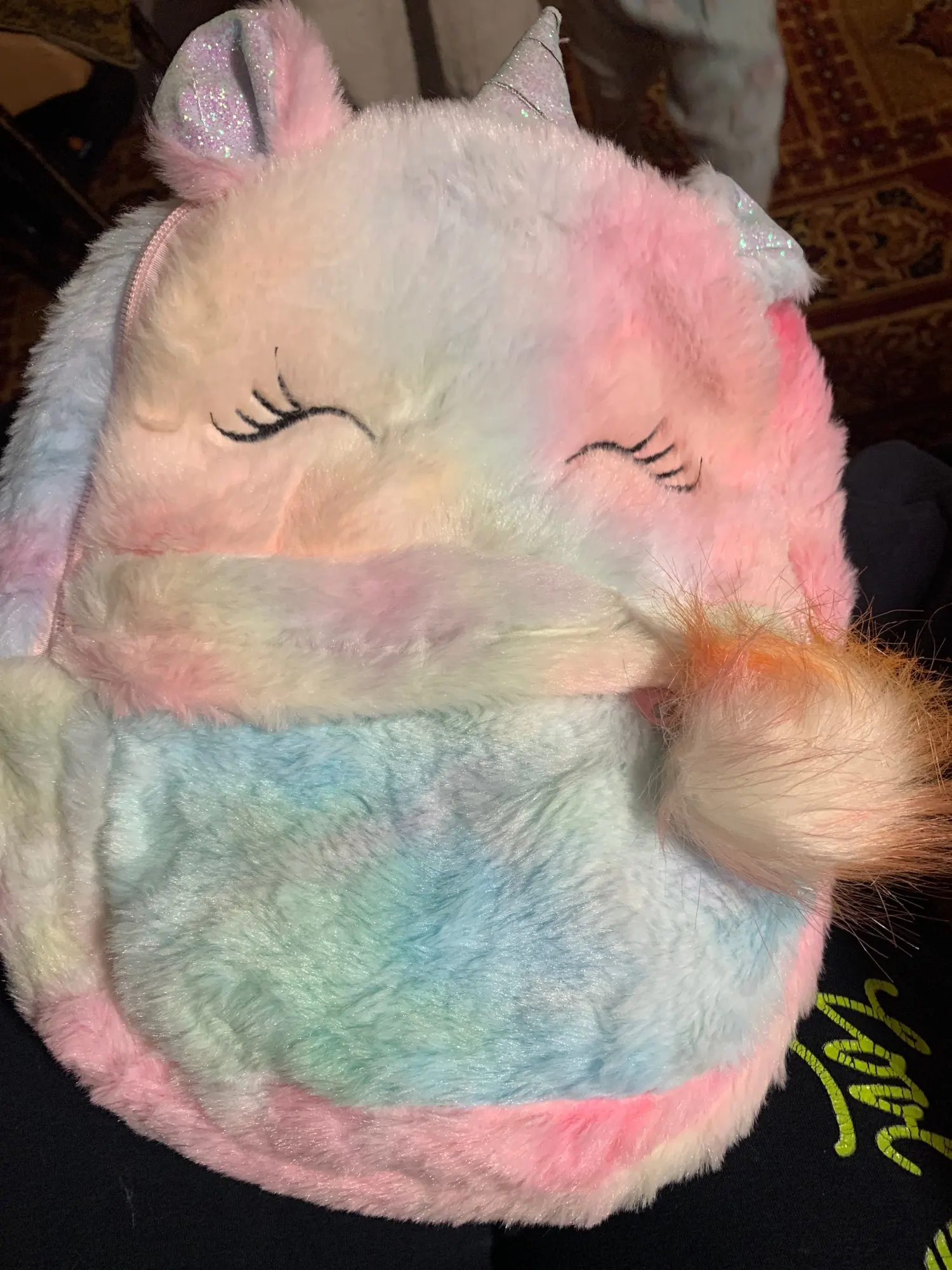 Детский плюшевый рюкзак для девочек, вместительная сумка на плечо с милым мультяшным единорогом и меховой застежкой-молнией, детский школьный портфель, подарок для детей