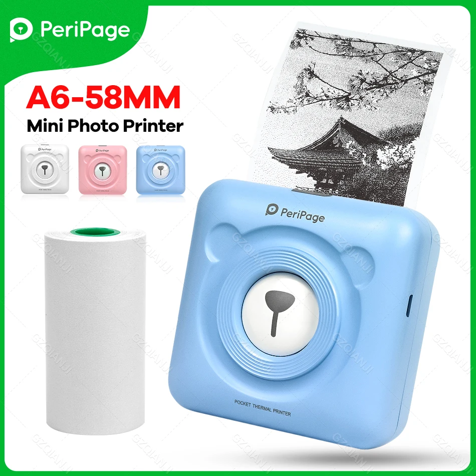 Портативный мини-принтер PeriPage A6, 203 точекдюйм, Bluetooth