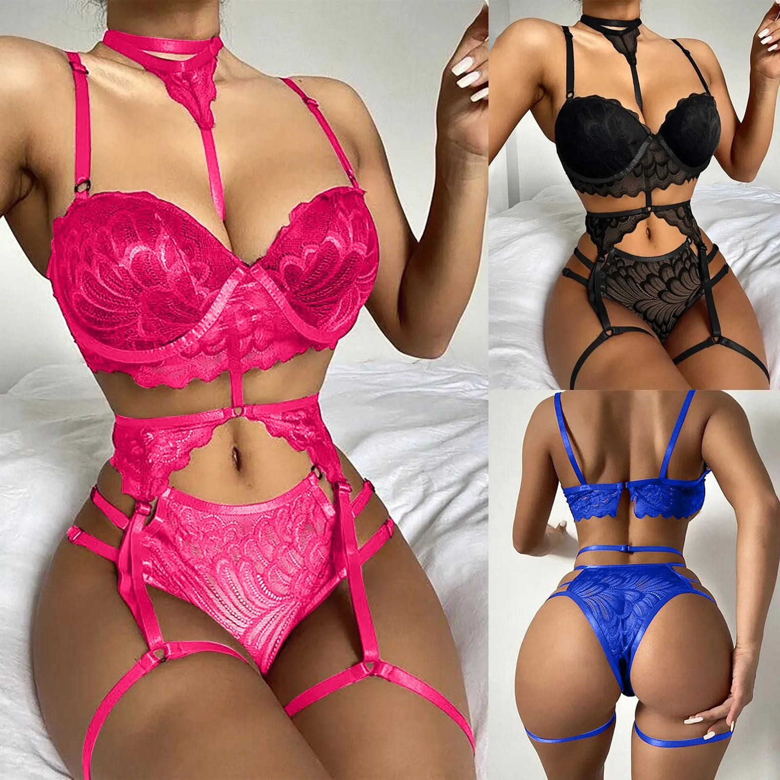 Бондажное нижнее белье, комбинация, сексуальный бюстгальтер, трусик...