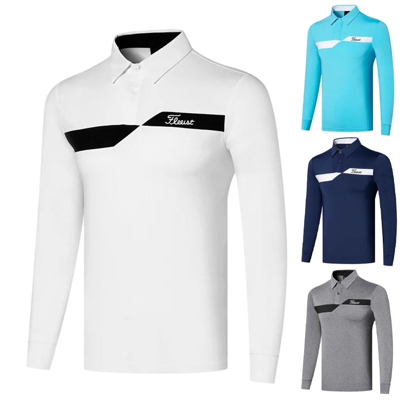 Одежда для гольфа для мужчин, рубашка с длинным рукавом и круглым в...