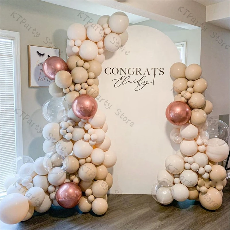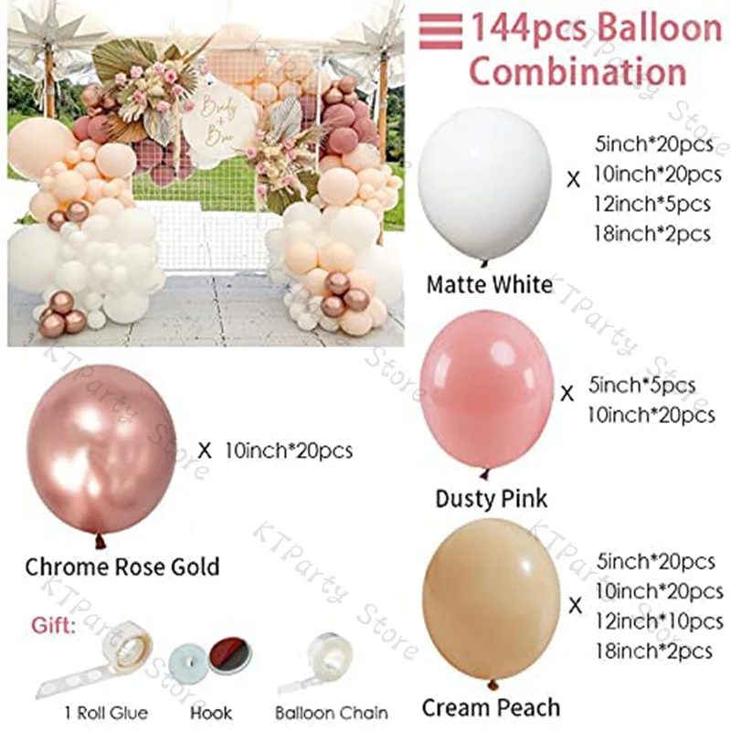 144 шт. кремовый персиковый воздушный шар, арочная гирлянда, свадебное украшение, хром, розовое золото, серый, розовый, для Baby Shower, украшение для вечеринки на день рождения