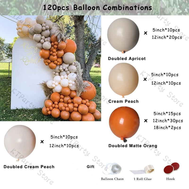 120 шт. набор воздушных шаров:Двойной матовый оранжевый (5 дюймов * 15 шт., 12 дюймов * 30 шт., 18 дюймов * 2 шт.)Абрикосовый (5 дюймов * 10 шт., 12 дюймов * 20 шт.)Крем-персик в два раза (5 дюймов * 10 шт., 12 дюймов * 10 шт.)Кремовый персик (5 дюймов * 10 шт., 12 дюймов * 10 шт.)Бесплатно для вас:Рулон глюе1 (100 шт)Воздушный шар 1(5 м)Крючок * 3