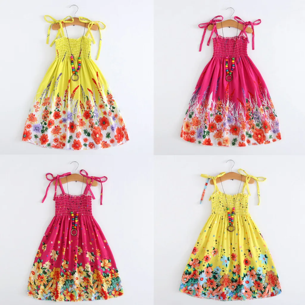 Цветочное богемное пляжное платье на бретельках, летнее платье принцессы на бретельках Для Девочек, детская Одежда, наряд Для отпуска