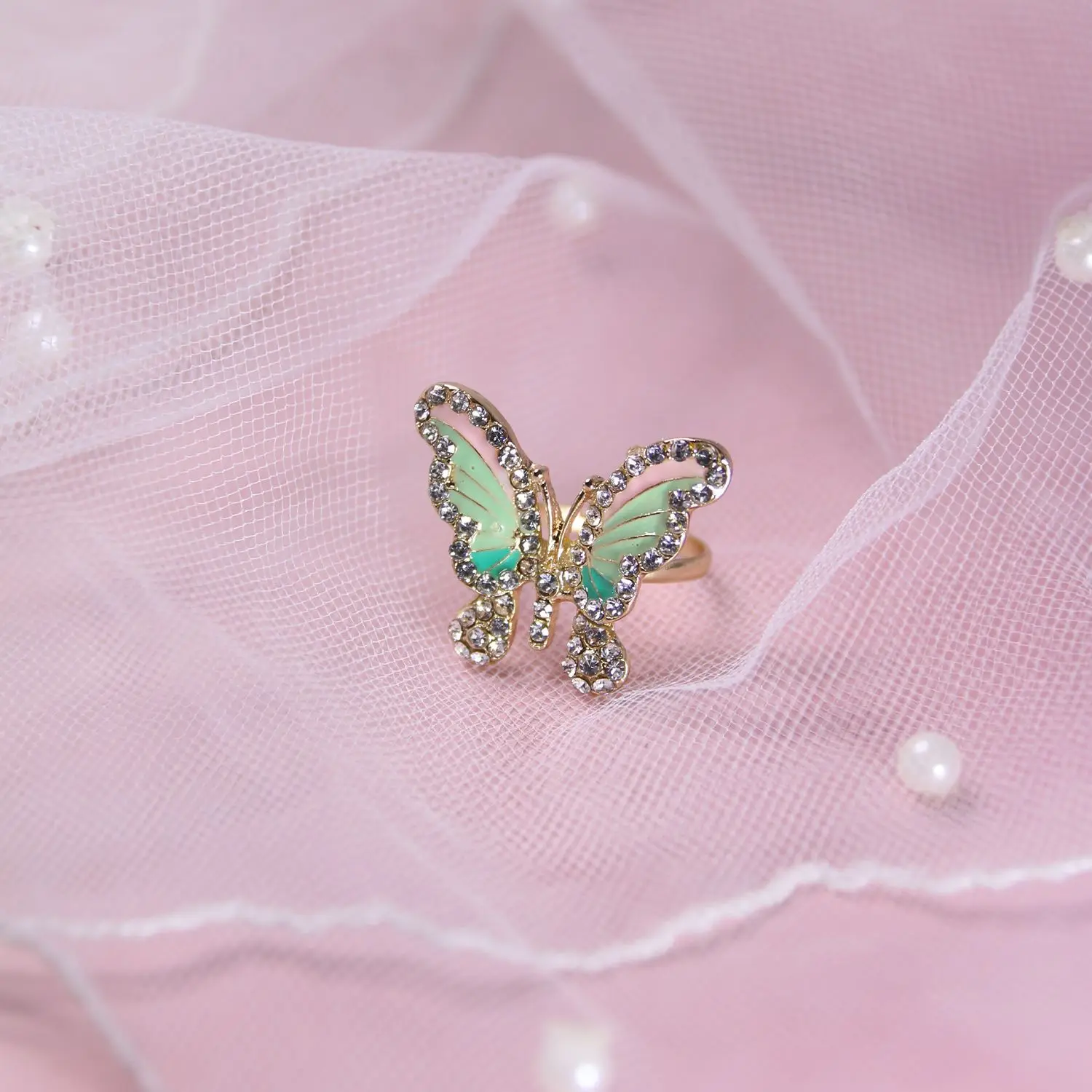 Женское кольцо Инь Ян 90-х в эстетике конфетных цветов, модное винтажное очаровательное кольцо с кристаллами в виде бабочки и грибов, Y2K, ювелирные изделия для друзей