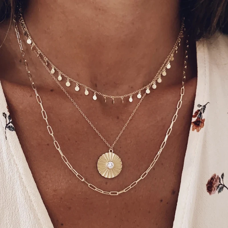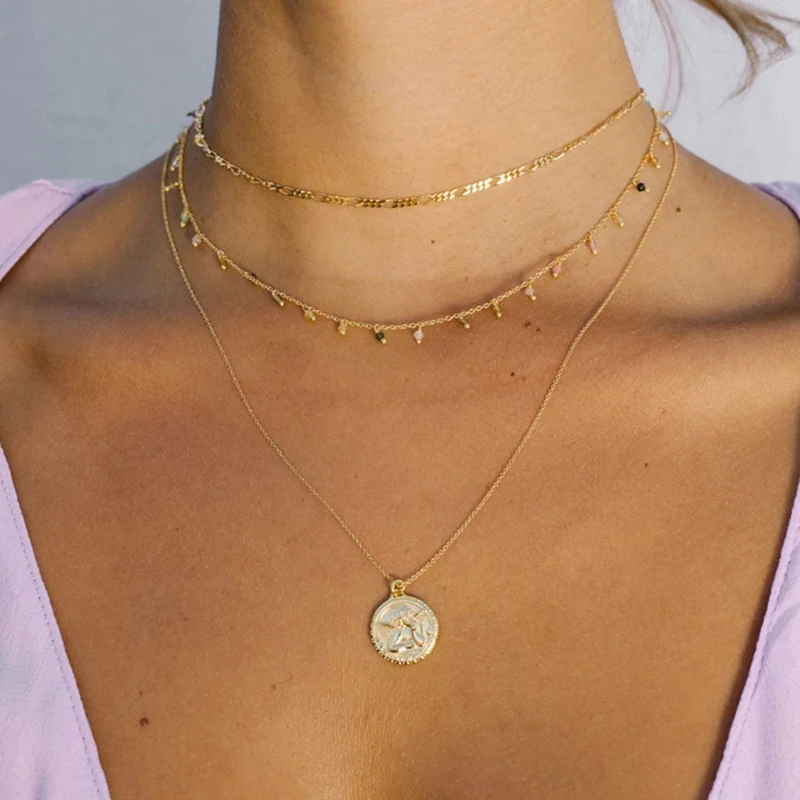 Модное ожерелье Звезда бар диск кулон четыре слоя ожерелье позолоче...